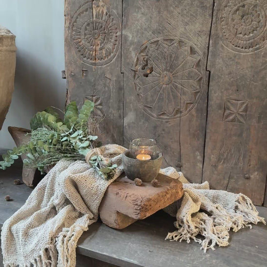 What a lovely item this is! Another one with a real story and a real history. This is a hand-carved, authentic coconut grating bench. You sit or kneel on the wide part, and the raised point usually has an iron grating blade with sharp teeth. You move the halved coconut back and forth over the teeth, creating fresh coconut flakes. These graters are most common in Indonesia, Sri Lanka, and South India and date back to the 19th century. The grater has a beautiful patina.