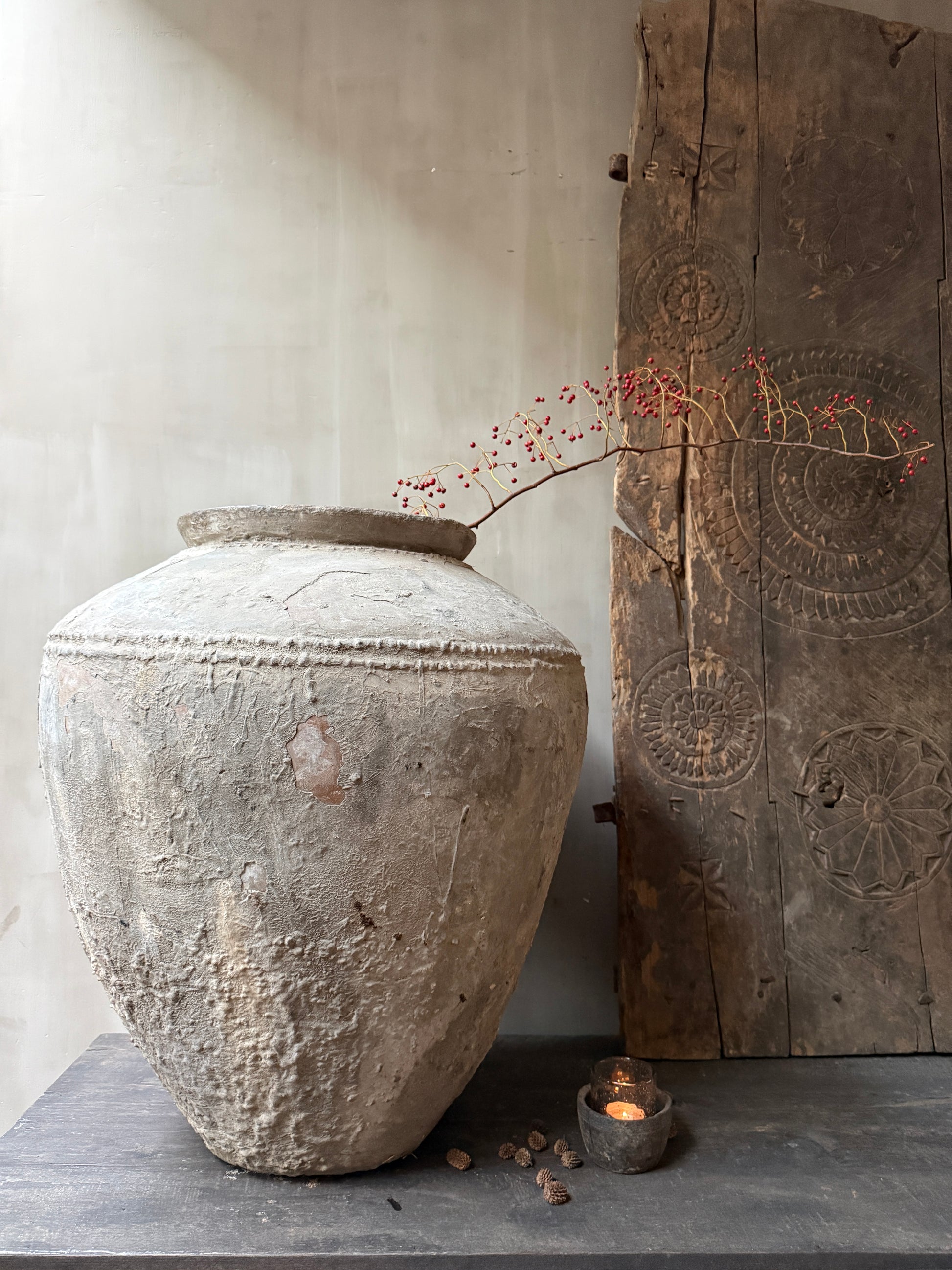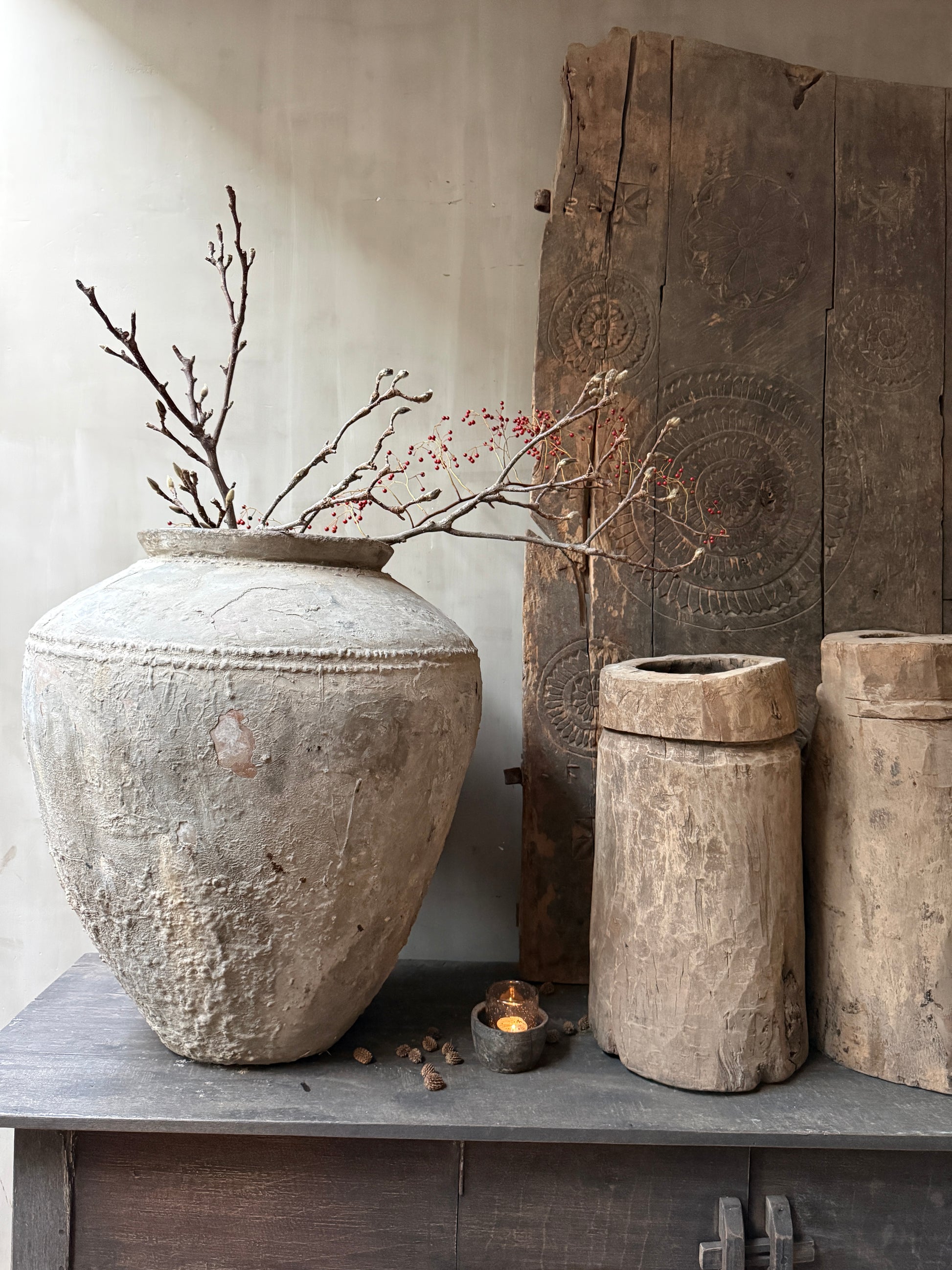 A beautiful, original old water jug. You can never have too many jugs, in my humble opinion; I'm crazy about them! This jug is so incredibly beautiful on its own; you don't need to style it at all. And if you do want to style it, everything looks great in it, from your fallen Annabel hydrangea to a lovely branch. A perfect addition to any interior with its lovely weathered look.