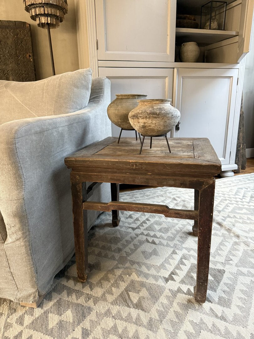 Prachtige antieke Chinese bijzettafel die door de tand des tijds alleen maar mooier geworden is. Prachtig verweerd en geleefd hout. Een echte eyecatcher in uw interieur en een echt uniek en authentiek stuk!