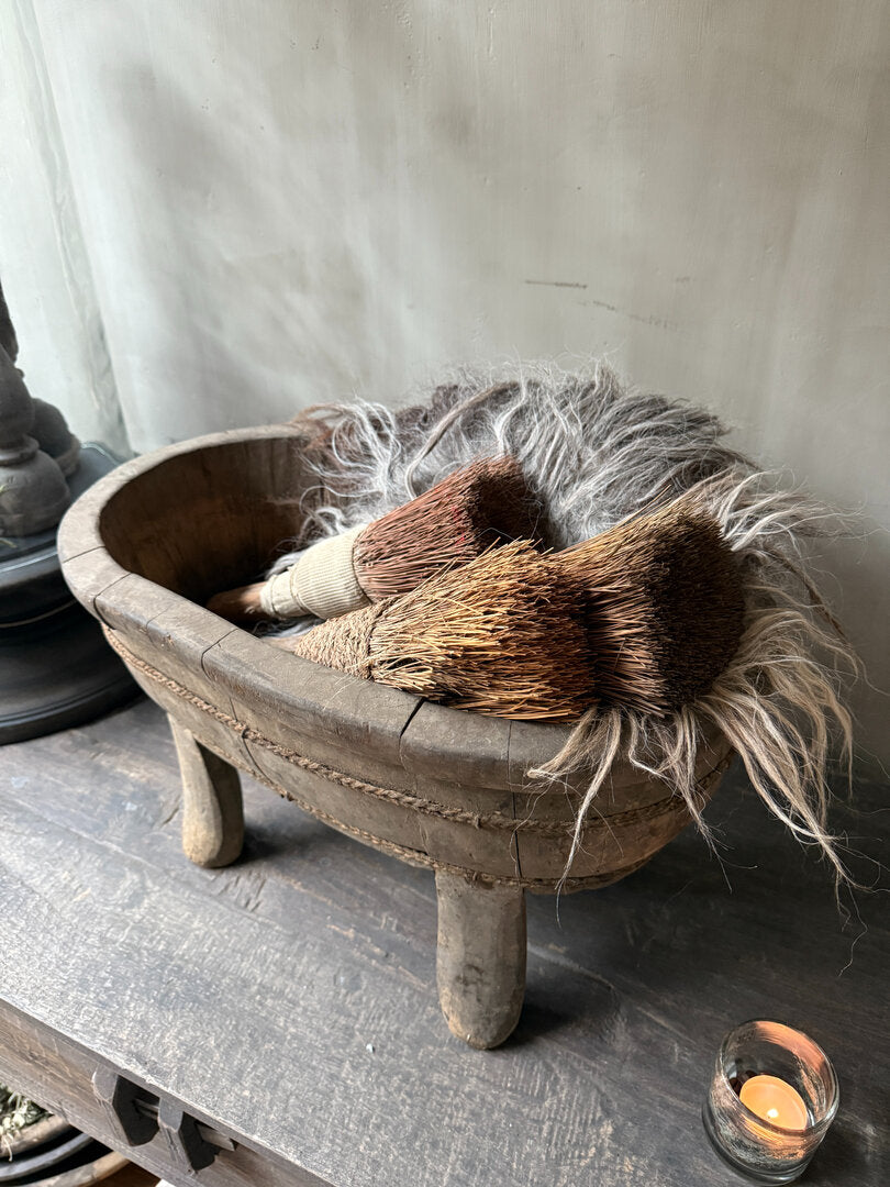 Antieke rustieke oude borstels uit China zijn fascinerende artefacten die een kijkje bieden in het ambachtelijke verleden van het land. Deze borstels, vaak met de hand vervaardigd, werden traditioneel gebruikt voor het aanbrengen van lijm in verschillende ambachtelijke en industriële toepassingen. De handvatten zijn meestal gemaakt van hout of bamboe, terwijl de borstelharen van dierenhaar of plantaardige vezels zijn gemaakt. Deze lijmborstels vertellen een verhaal van vakmanschap en traditie, en hun unieke esthetiek maakt ze gewilde verzamelobjecten voor liefhebbers van antiek en geschiedenis.