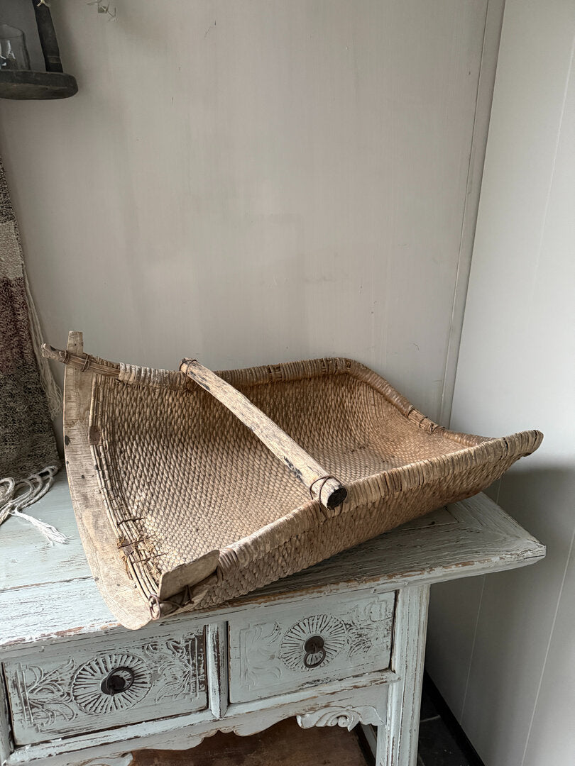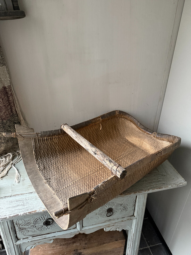 Prachtige authentieke grote Chinese rijstschep. Mooie oude en originele doorleefde rijstschep, afkomstig uit China. Mooi voor op een tafel of kast of schuif deze onder de salontafel/sidetable met plaids en tijdschriften. Een unieke en veelzijdige blikvanger voor in een stoer sober en landelijk interieur. U haalt met deze rijstschep echt een item in huis met een verhaal en dat straalt deze ook uit.