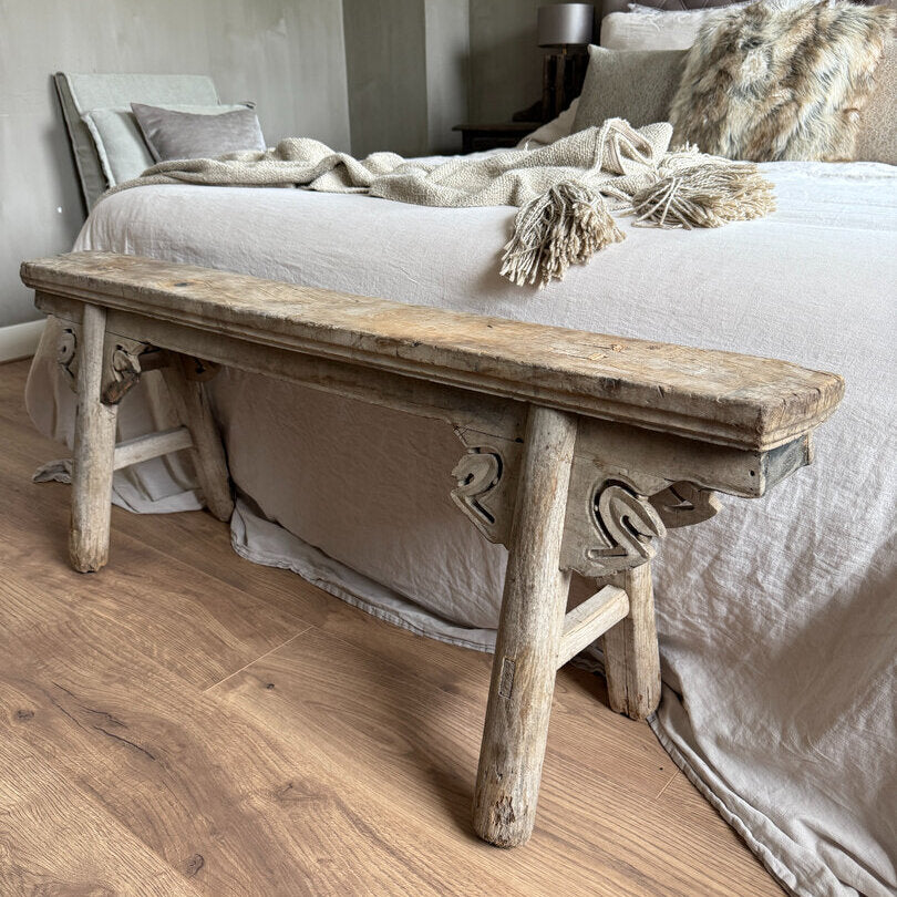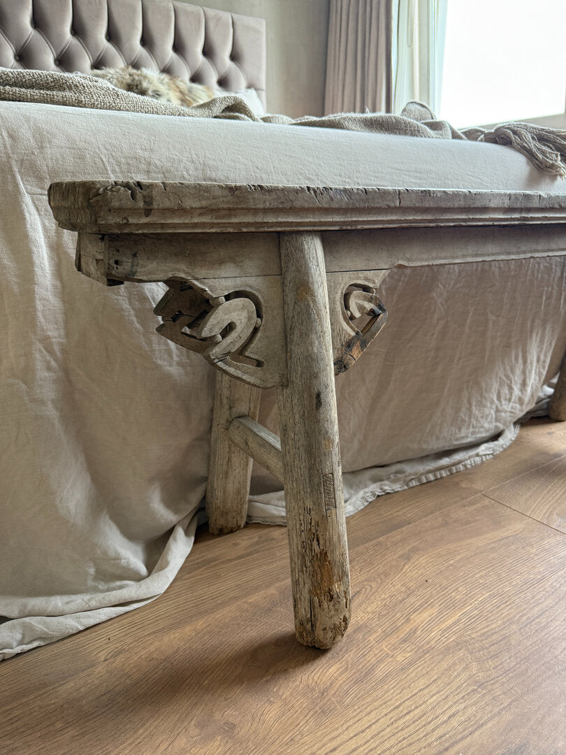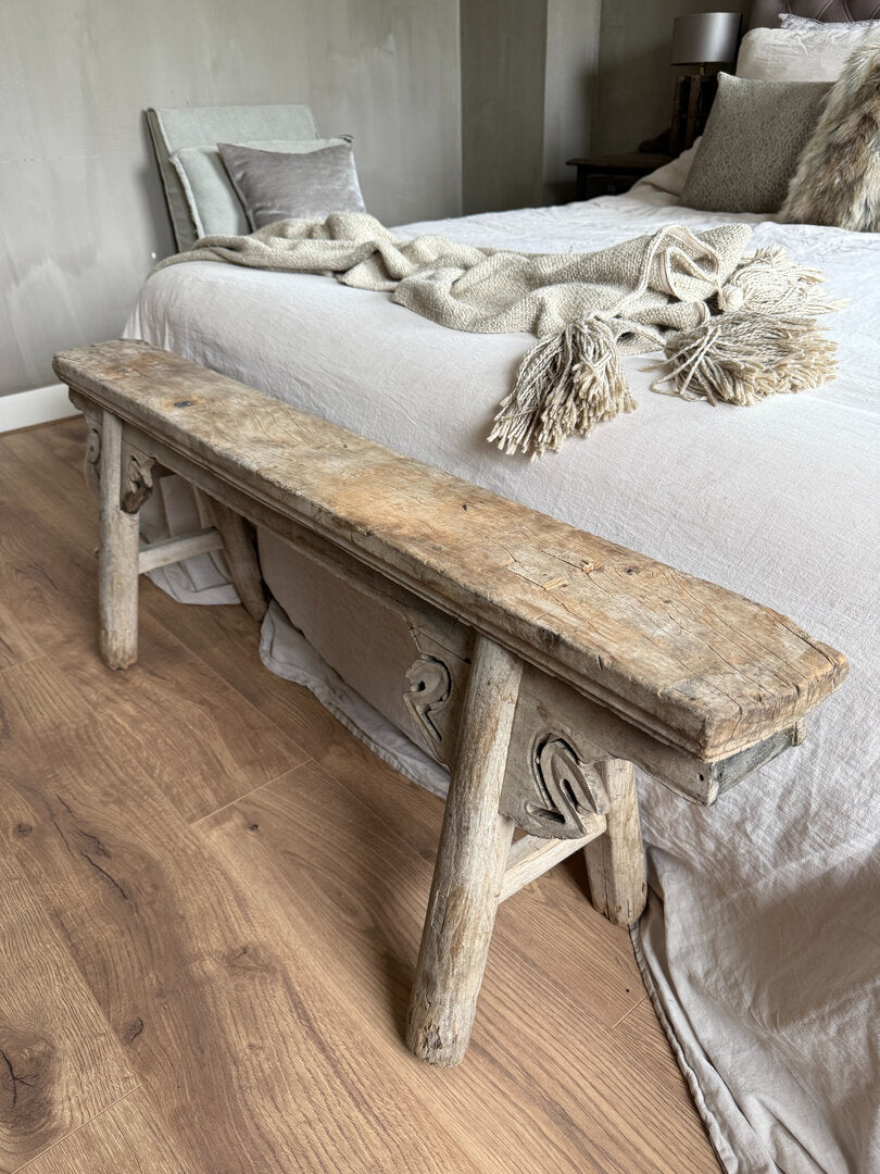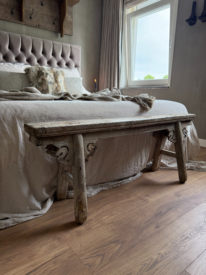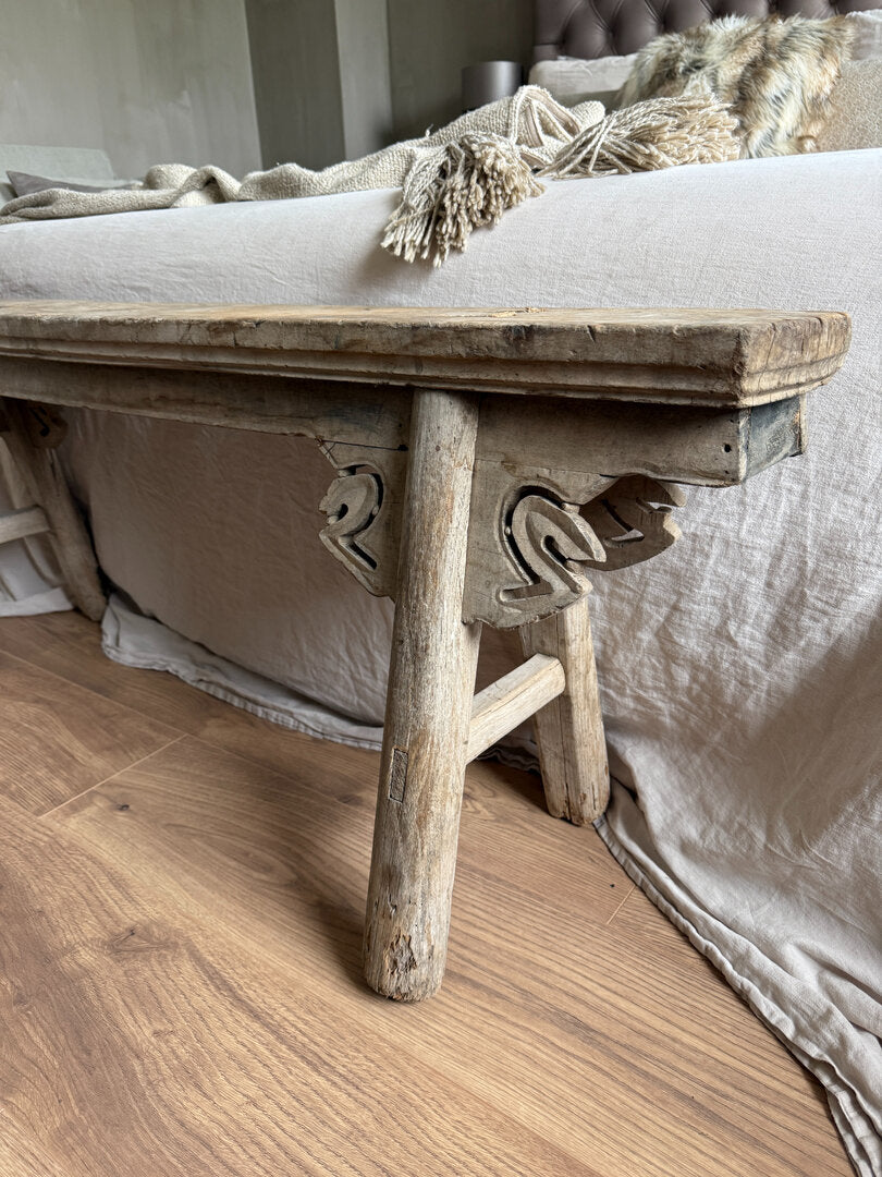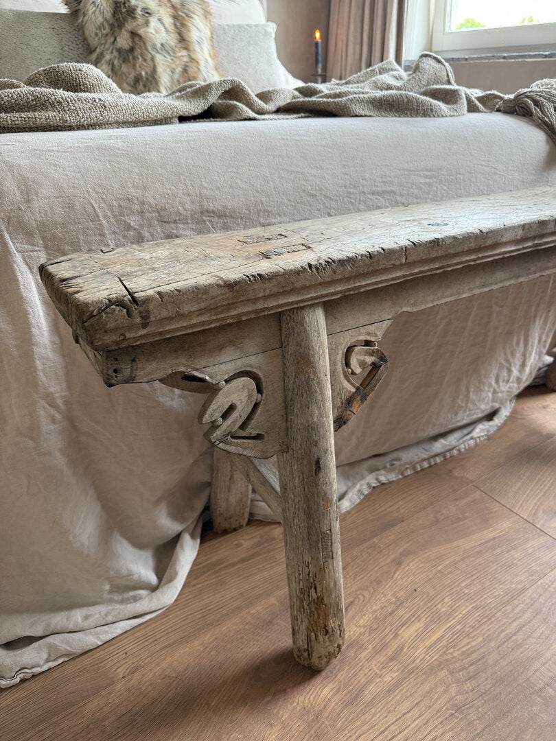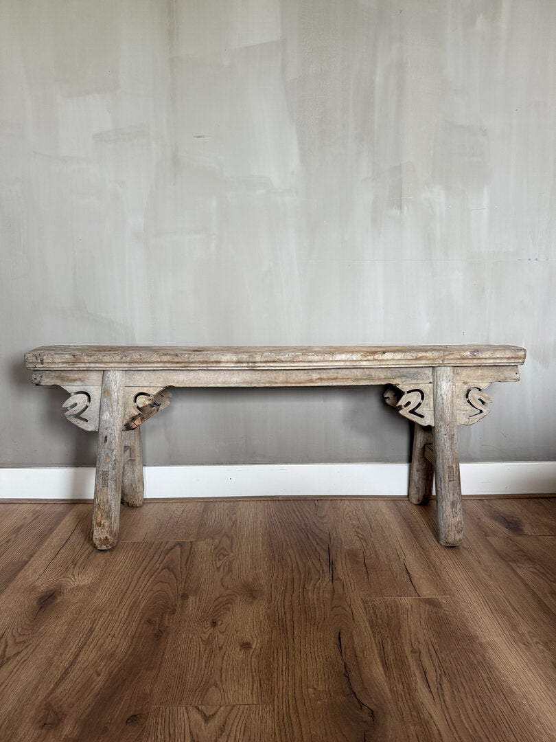 Deze prachtige Chinese bank van verweerd en vergrijsd hout is een eye catcher voor ieder interieur. Leuk voor in de hal of bijvoorbeeld als bandje aan het voeteneind van je bed. Zeer decoratief en ze zijn zo mooi van zichzelf, ze hebben niks meer nodig. Hoe mooi zijn de krullen aan het bankje! In China worden deze wolken genoemd en zouden geluk brengen!