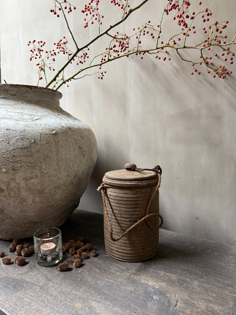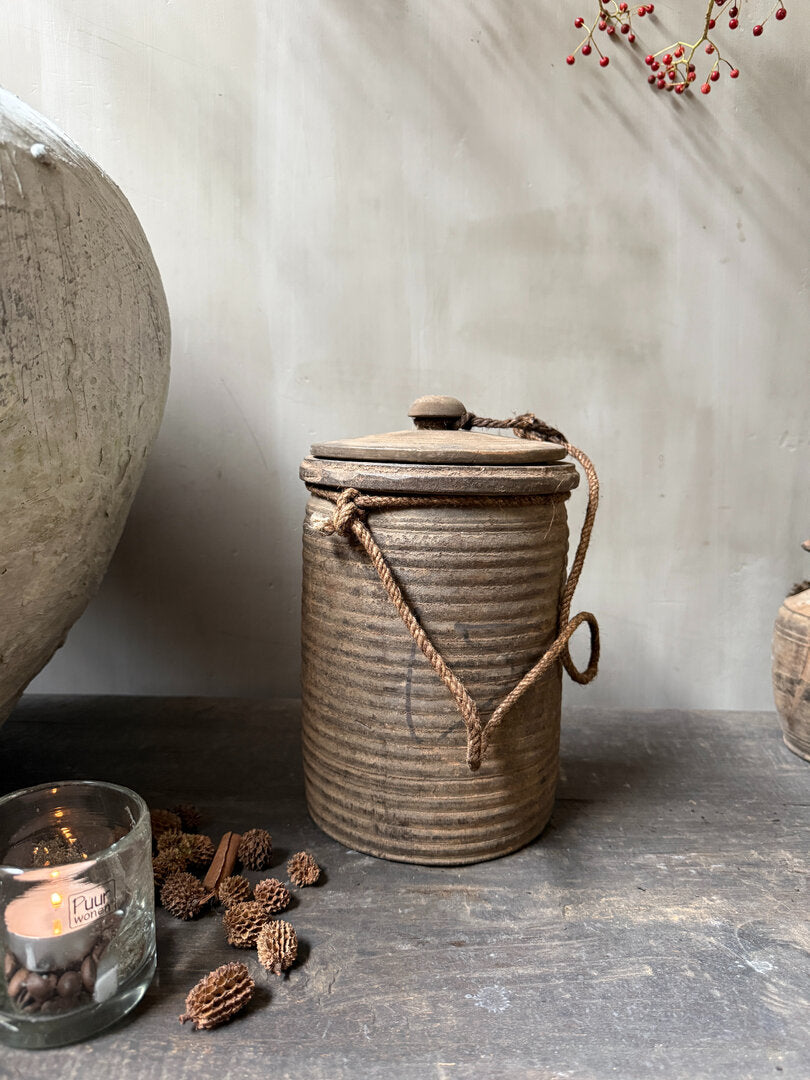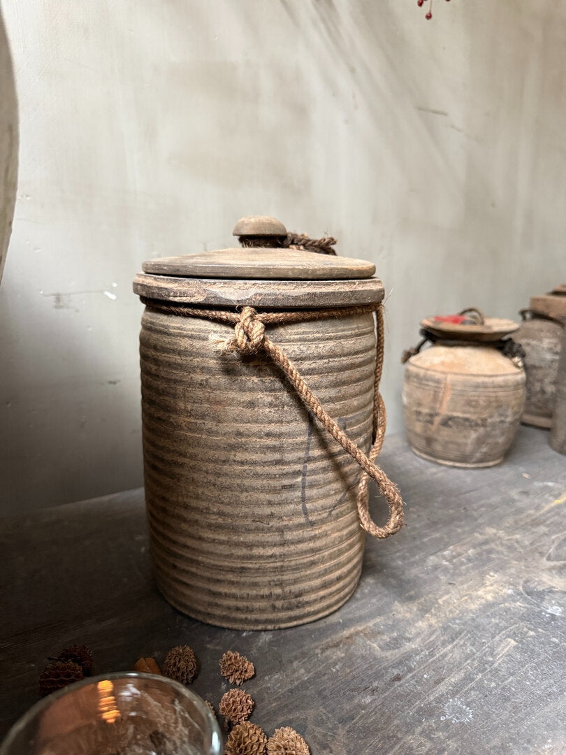 Houten kruikje met dekseltje. Begin je eigen verzameling met deze leuke verweerde houten kruikjes waarvan er geen een het zelfde is.