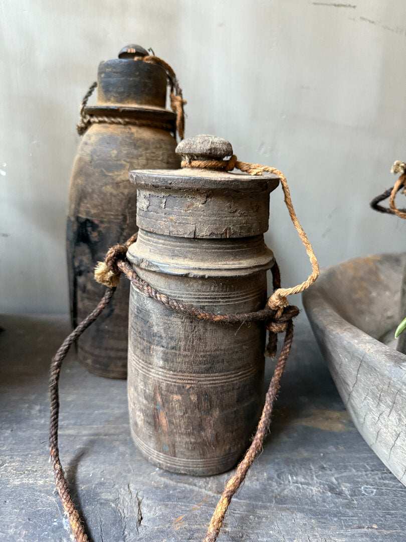 Houten kruikje met dekseltje. Begin je eigen verzameling met deze leuke verweerde houten kruikjes waarvan er geen een het zelfde is. 10