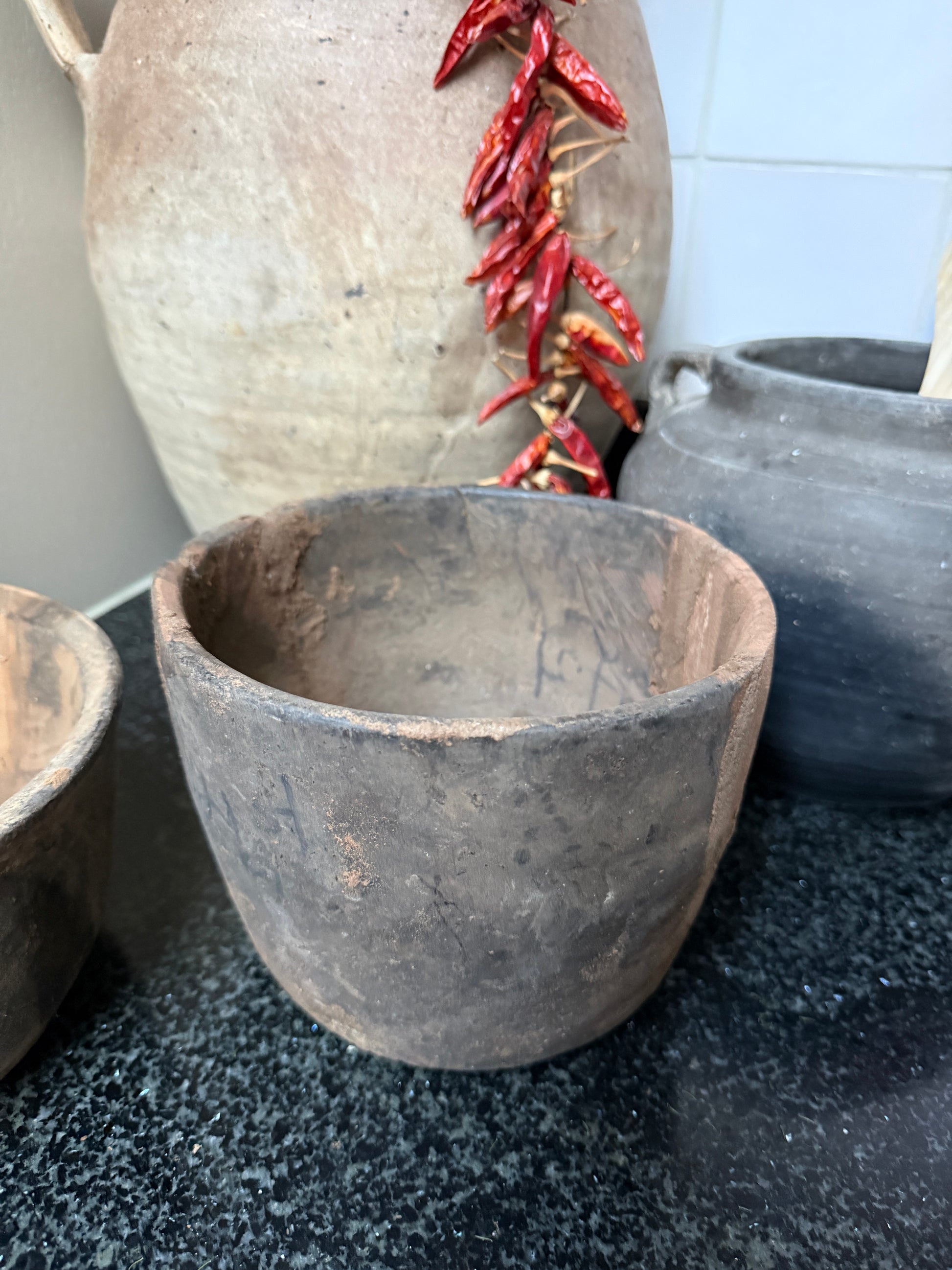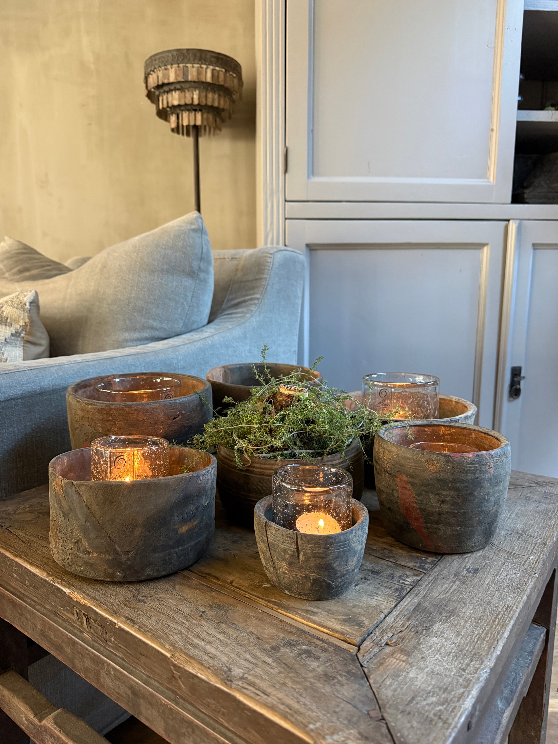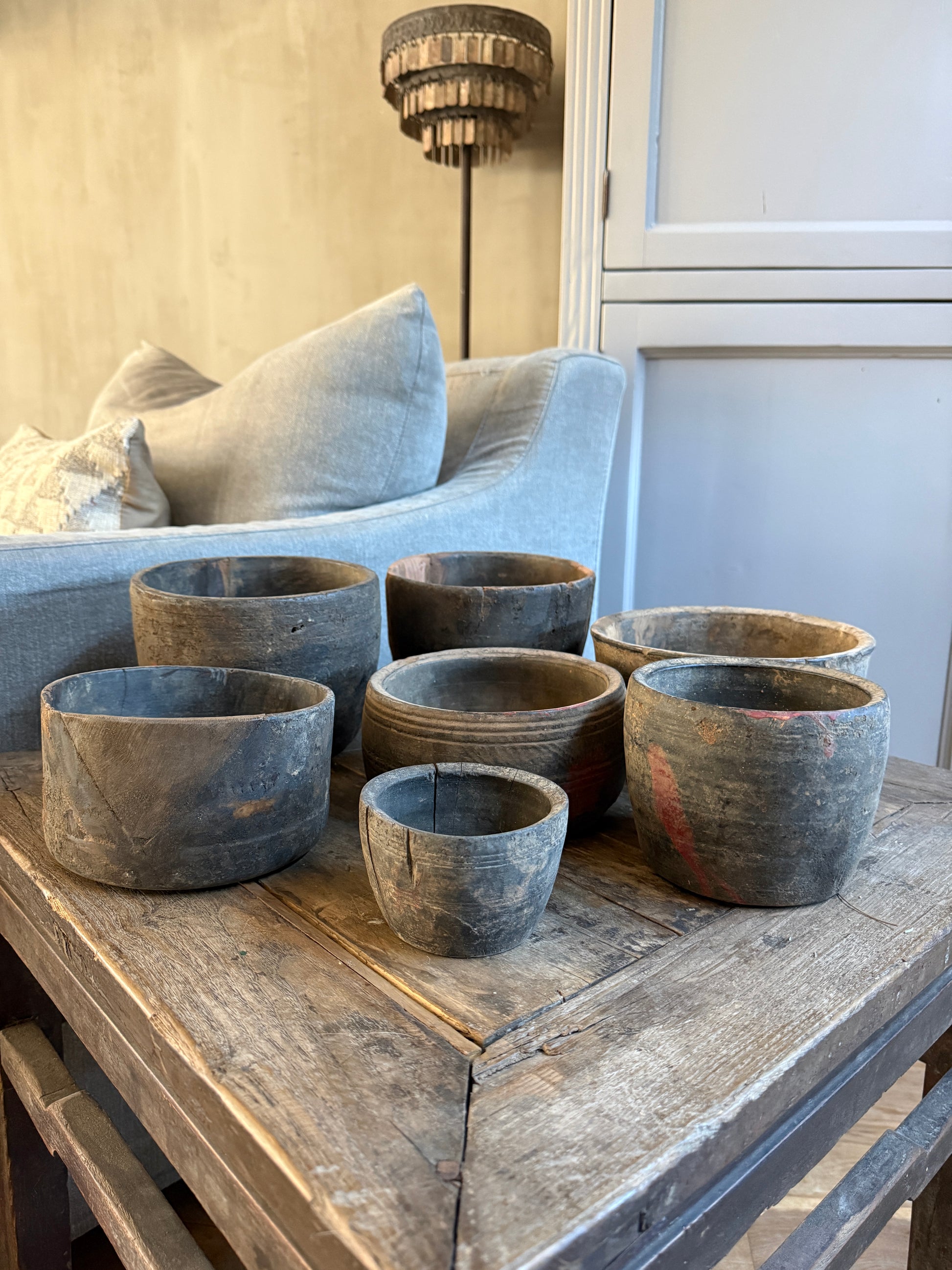 Verweerde oud houten potje. Leuk in de keuken te gebruiken bijvoorbeeld. Deze oude houten potjes ademen de sobere en geleefde uitstraling. Echte sfeermakers, gewoon heel decoratief. 7