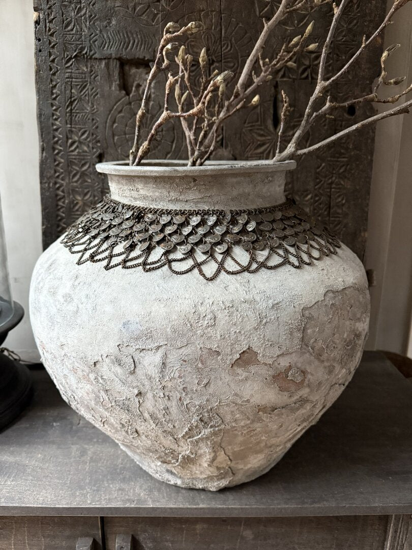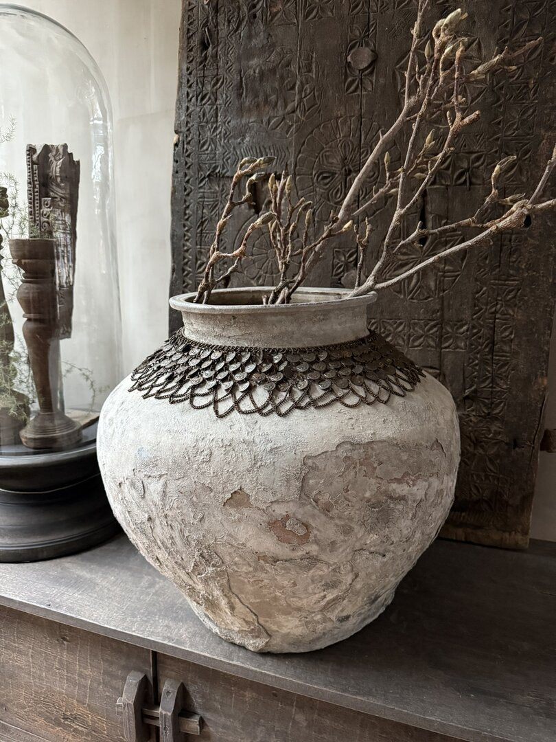 Prachtige roest kleurige kruikketting. Deze ketting is mooi om zowel een houten als een stenen kruik. In letterlijke zit een sierraad voor uw kruik.