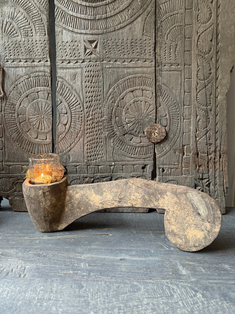 Prachtige houten Nepalese lepel met mooi bewerkt handvat. In deze lepel past een windlichtje. Zo kun je de lepel ook gebruiken als leuke ornament kandelaar.