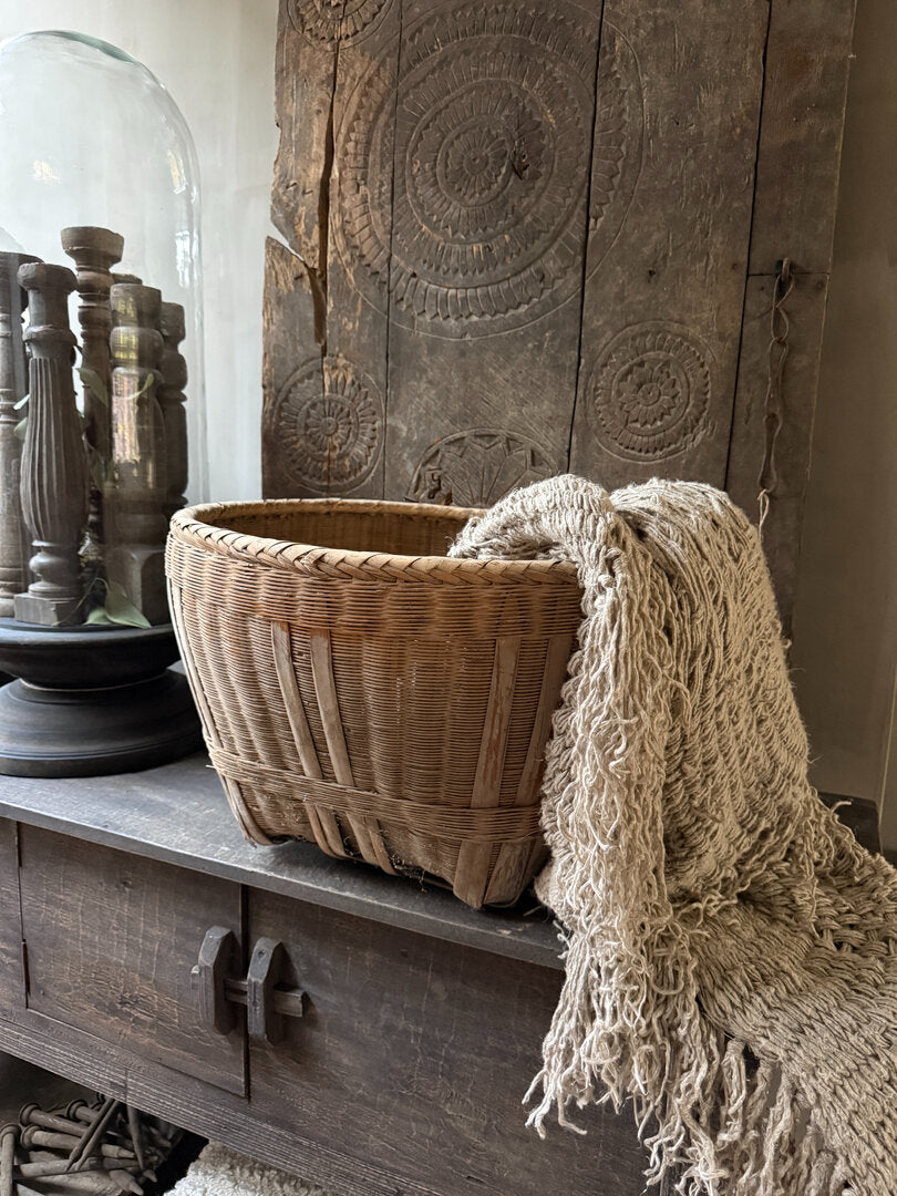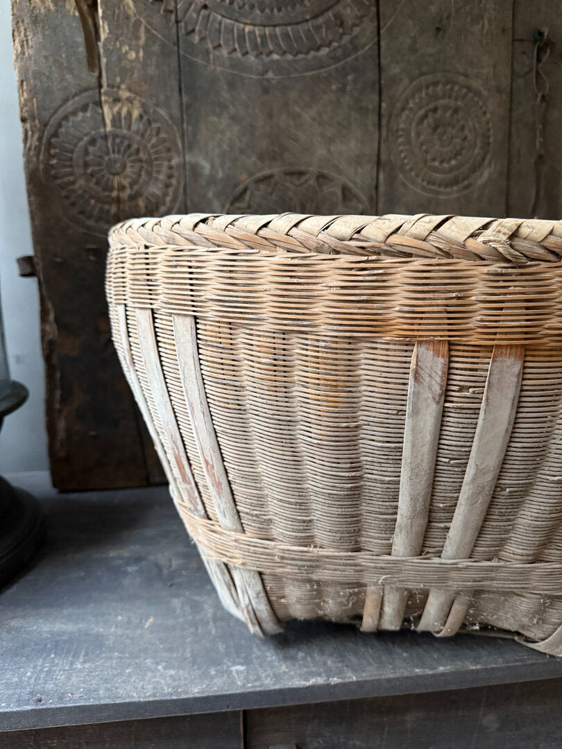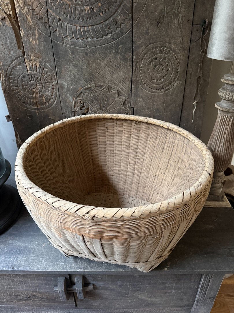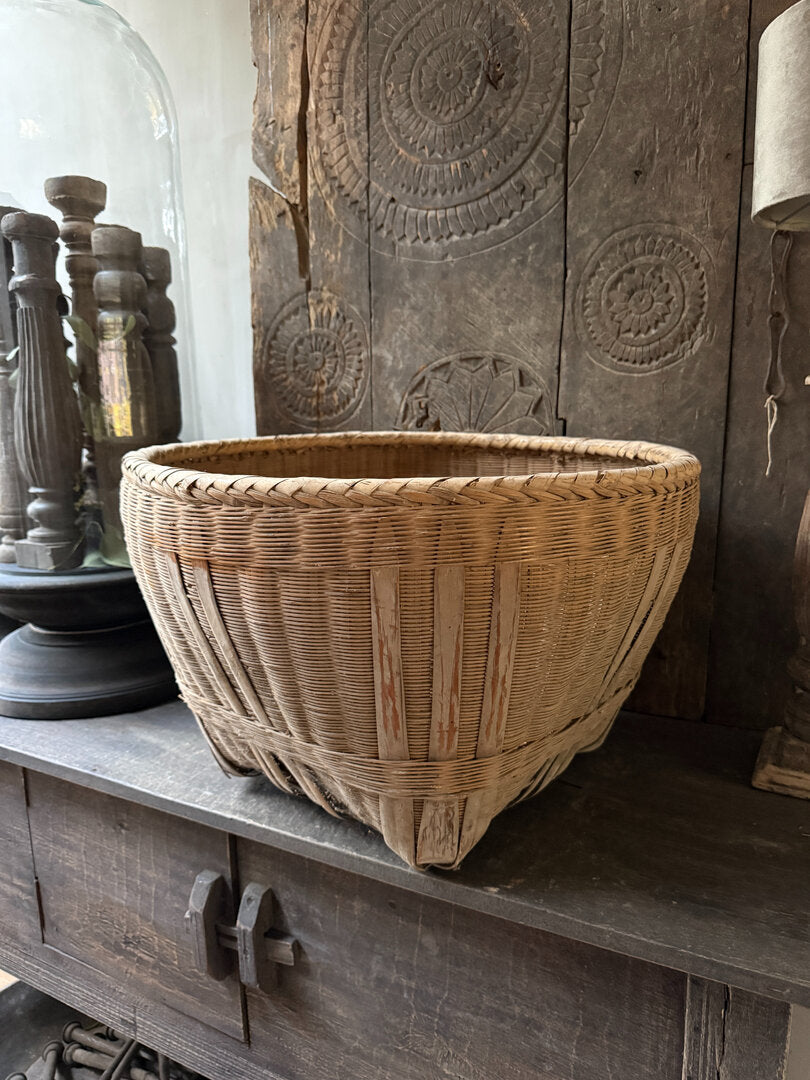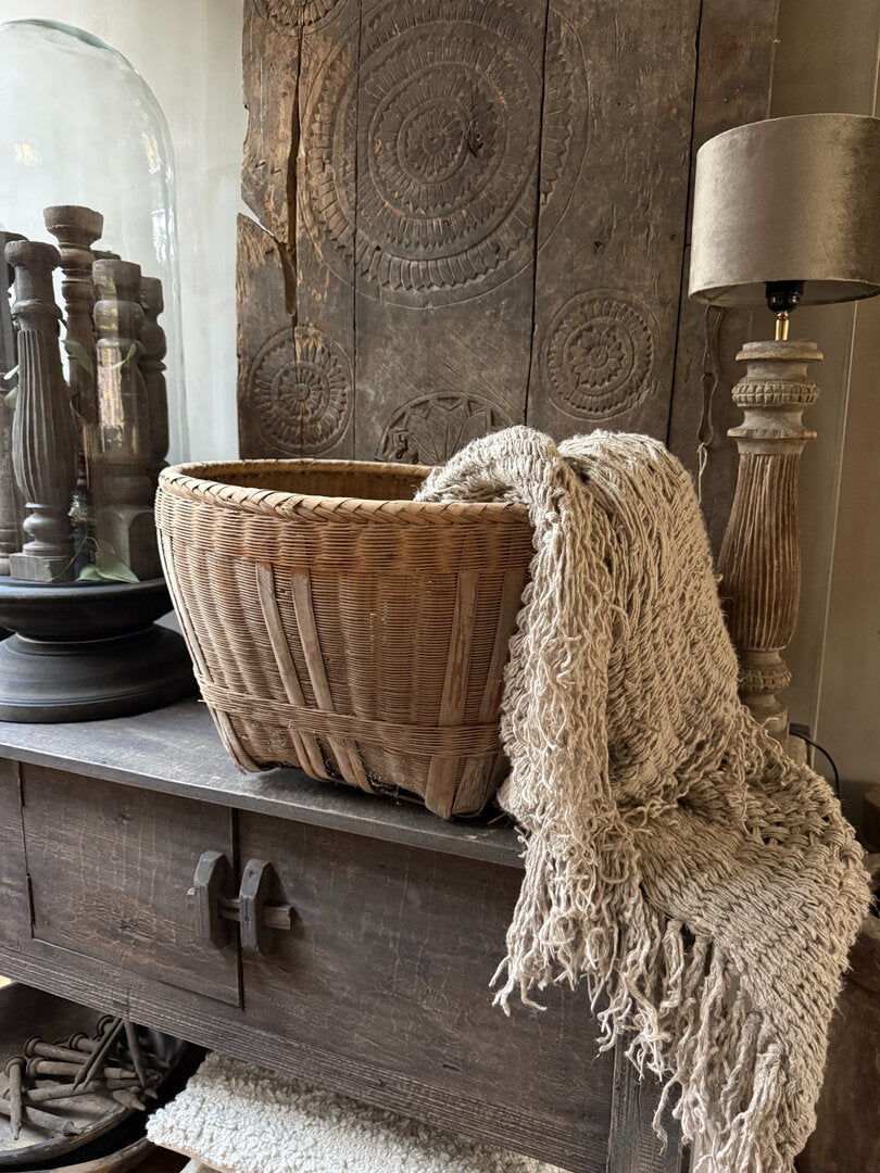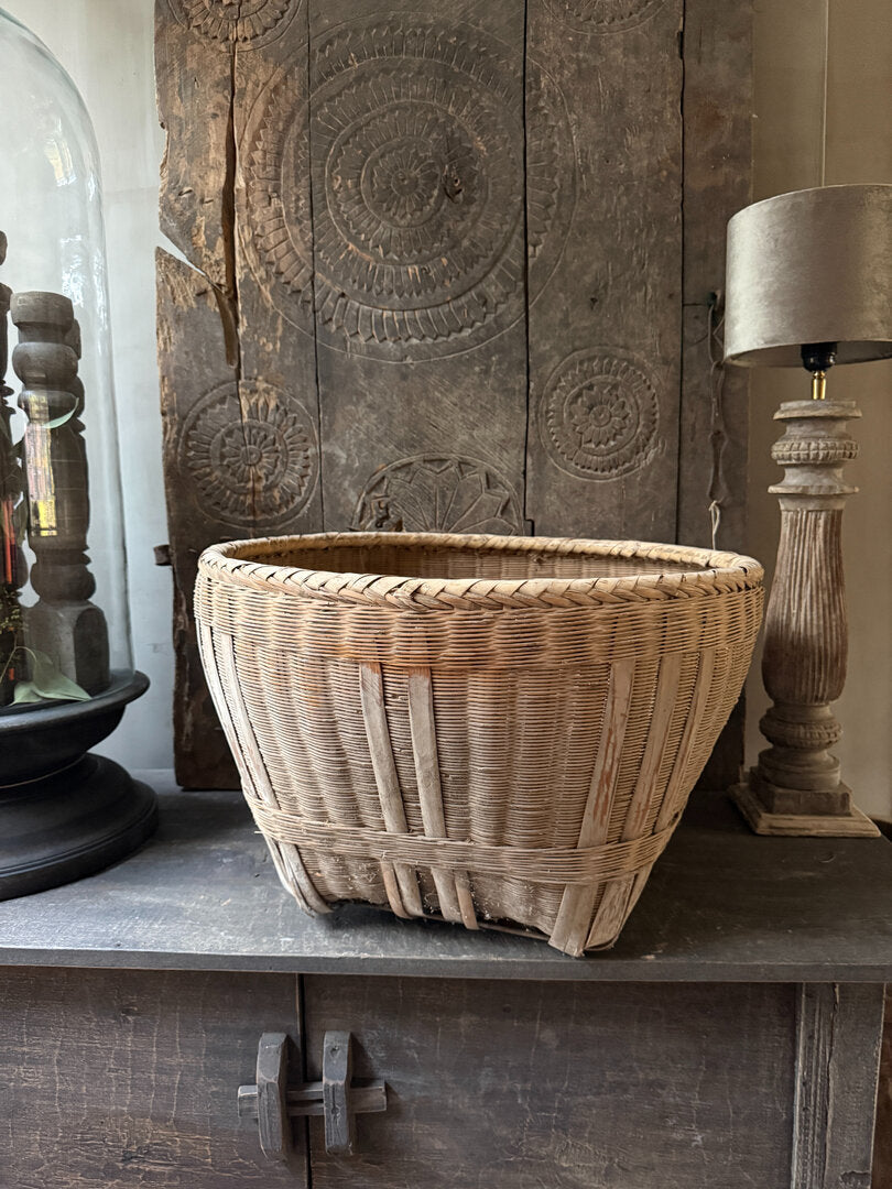 Prachtige oude Chinese rieten mand. De mand is mooi vergrijsd van kleur. Alle manden worden met de hand gemaakt en zijn allemaal uniek.