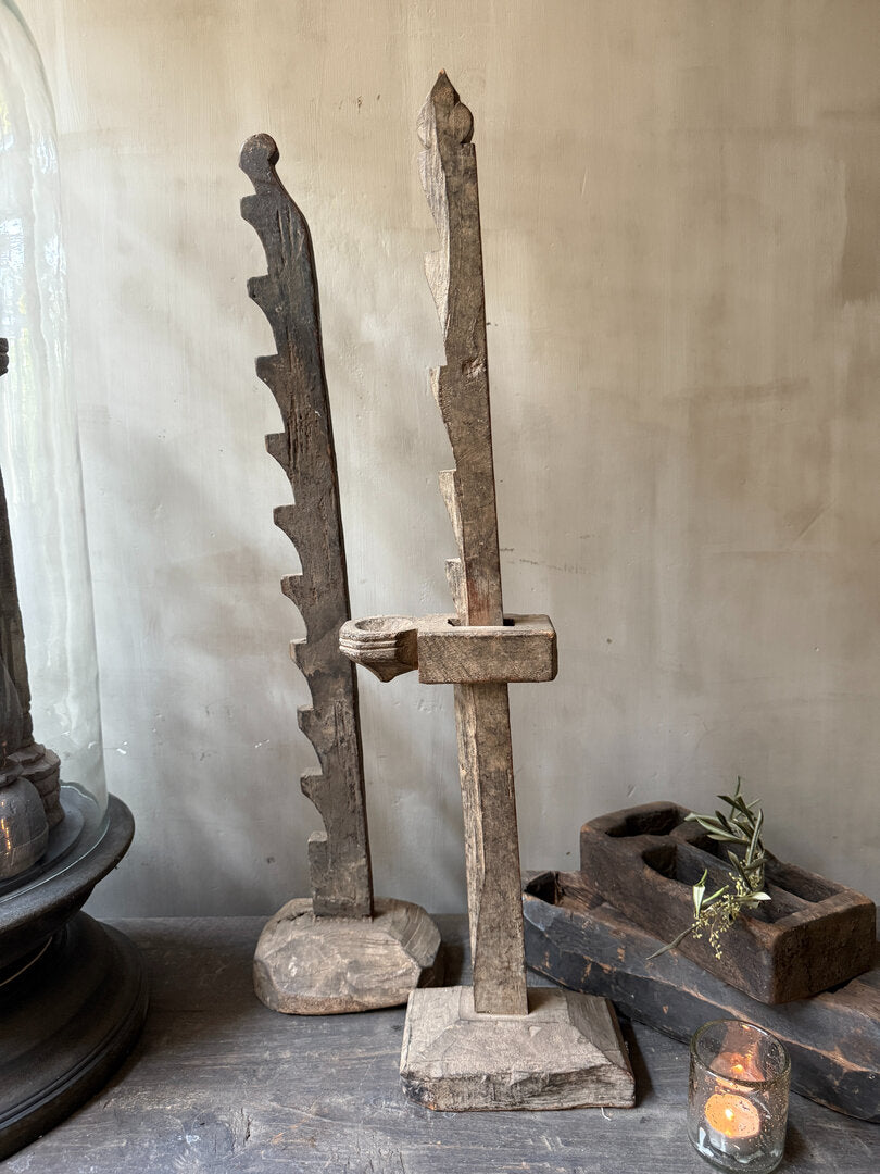 Wat een bijzonder ding dit super leuke oud houten ornament. Het lijkt wel een hele botte zaag. Decoratief is het in ieder geval zeker met zijn verweerde uitstraling en mooi verweerde hout.