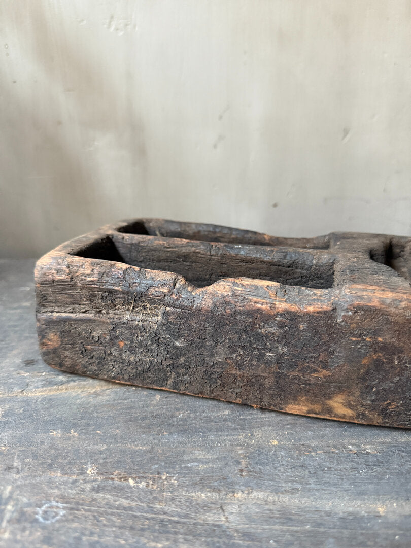 Leuk he deze oude houten bakjes met vakjes. Totaal verweerd en verouderd en met de hand vervaardigd. Er mist hier een daar een stukje, maar dat maakt ze juist zo leuk. Heel decoratief. Leuk voor in de keuken bijvoorbeeld.
