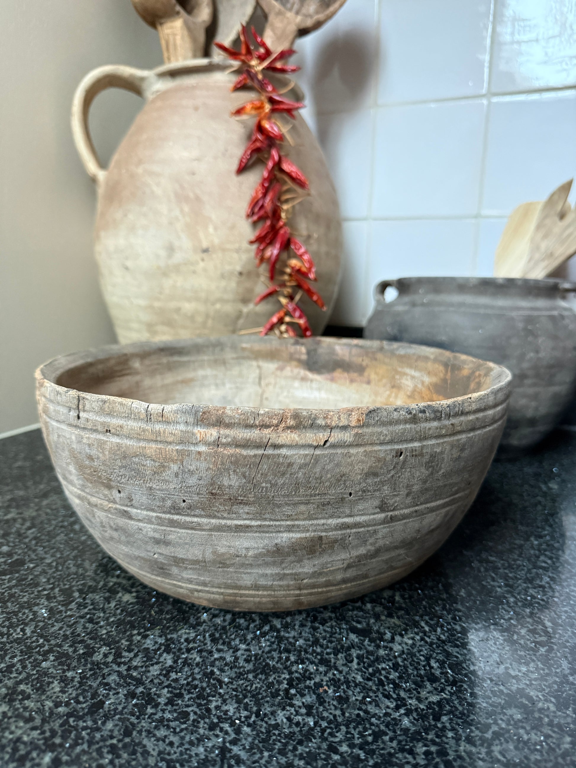 Mooie oude houten ronde bak.