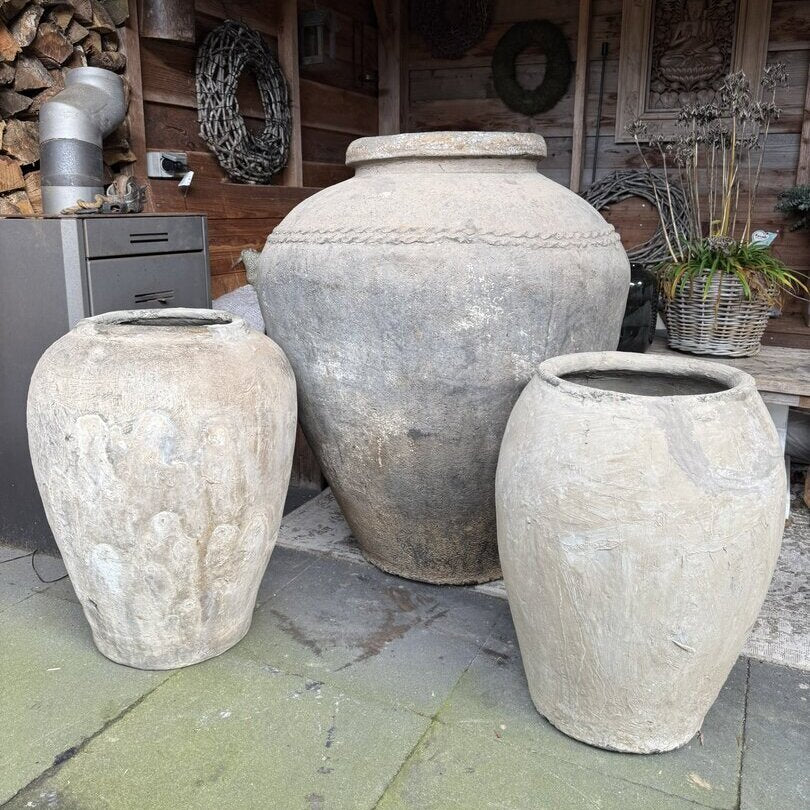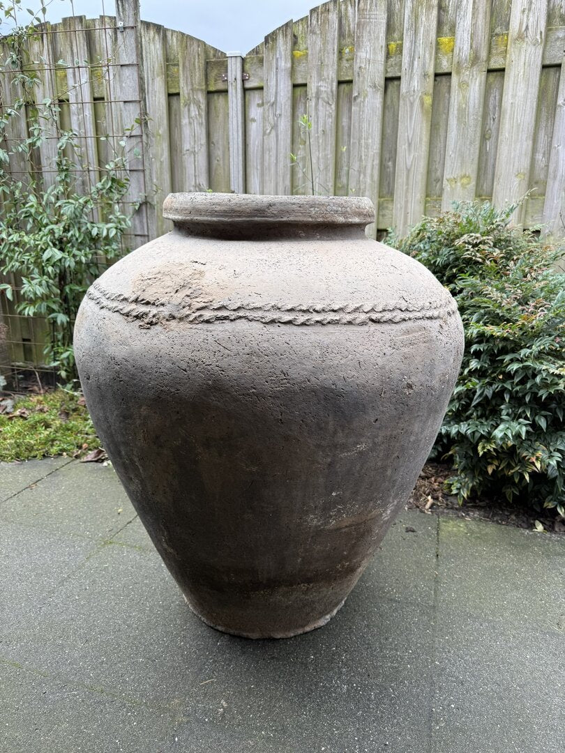 Veel mooier dan dit worden ze niet. Deze oude kruik heeft echt een prachtige geleefde, unieke en sobere uitstraling. Een absolute eyecatcher in je interieur en een zeer uniek stuk. Heel goed te combineren in zeer veel interieur stijlen. Mooi op te maken met grote takken, magnolia of een grote toef. Maar eigenlijk heeft deze kruik niks nodig, hij is al perfect van zichzelf. Ook buiten misstaat deze geweldige grote kruik niet!