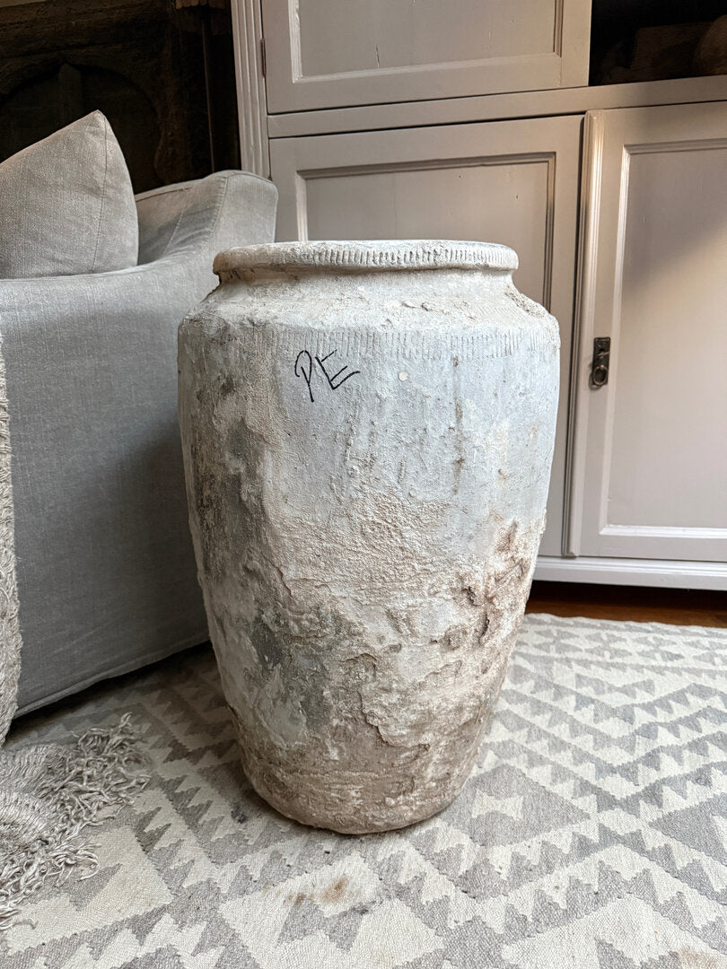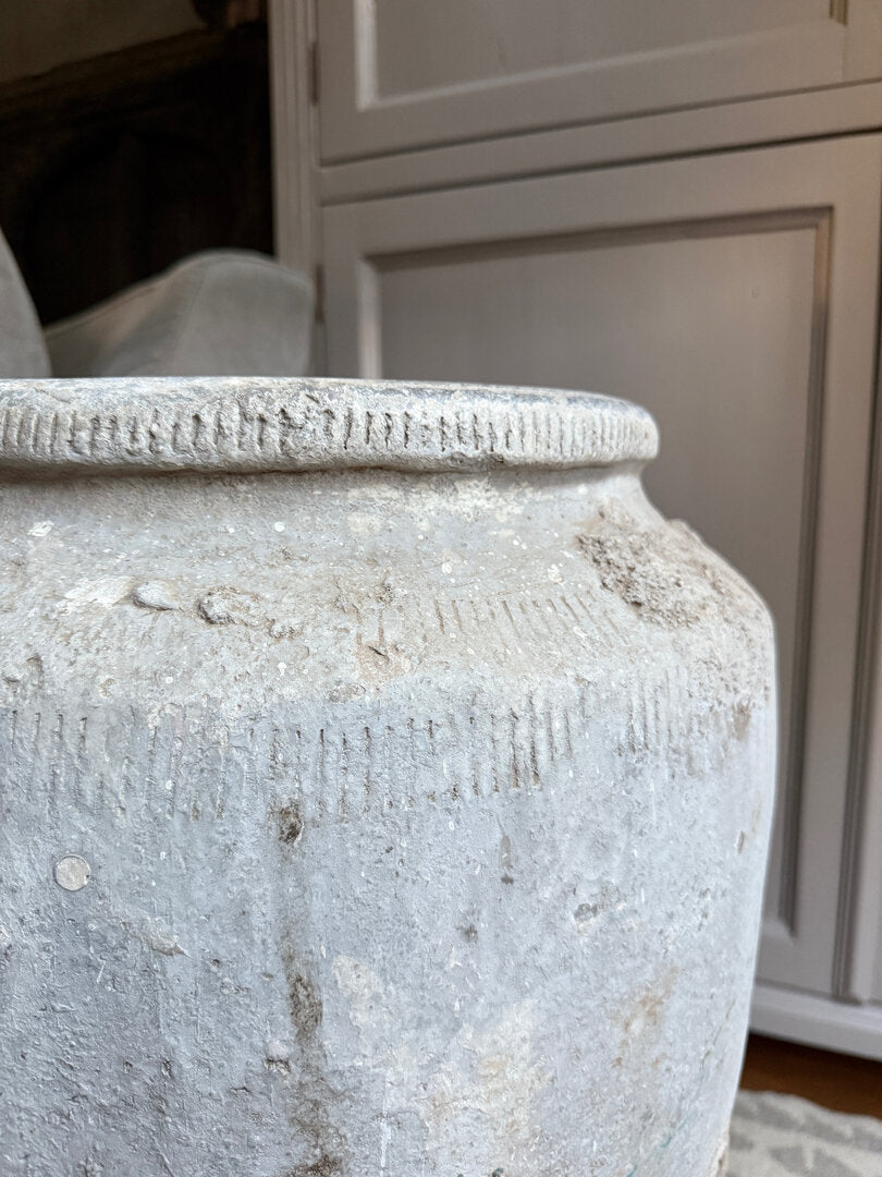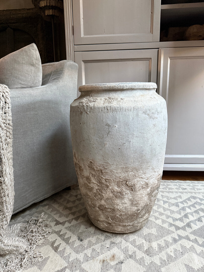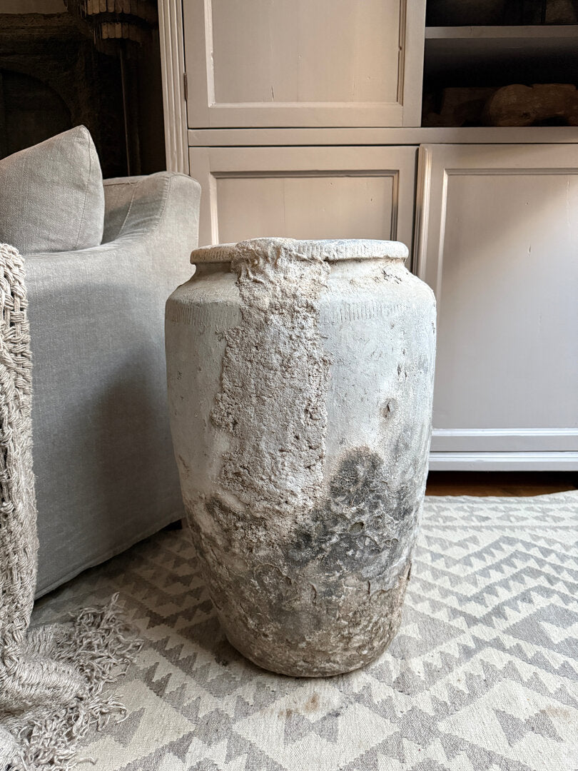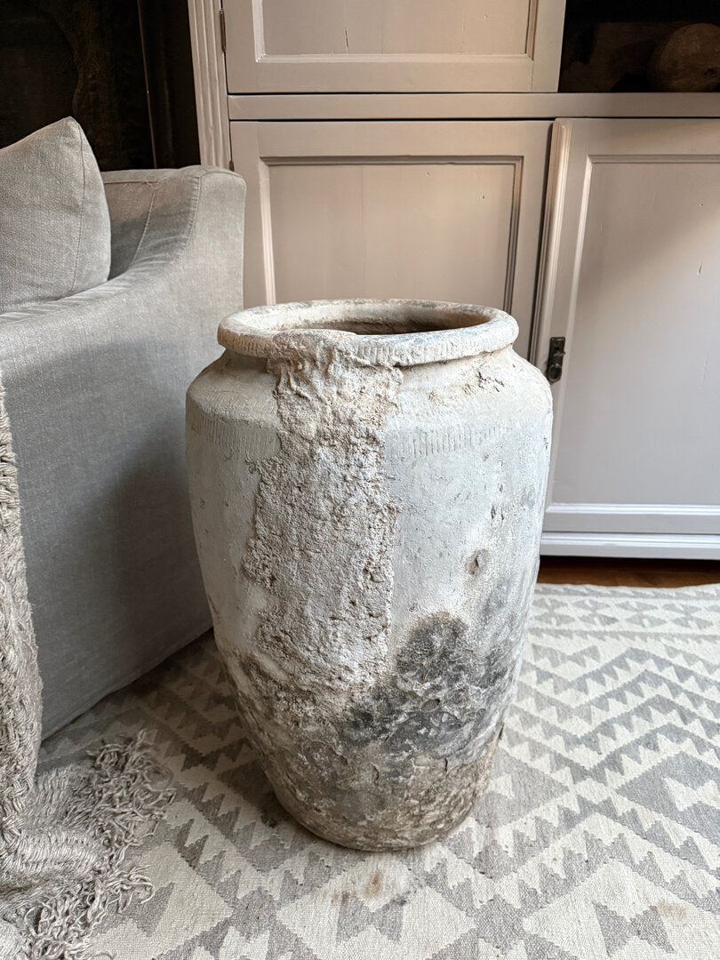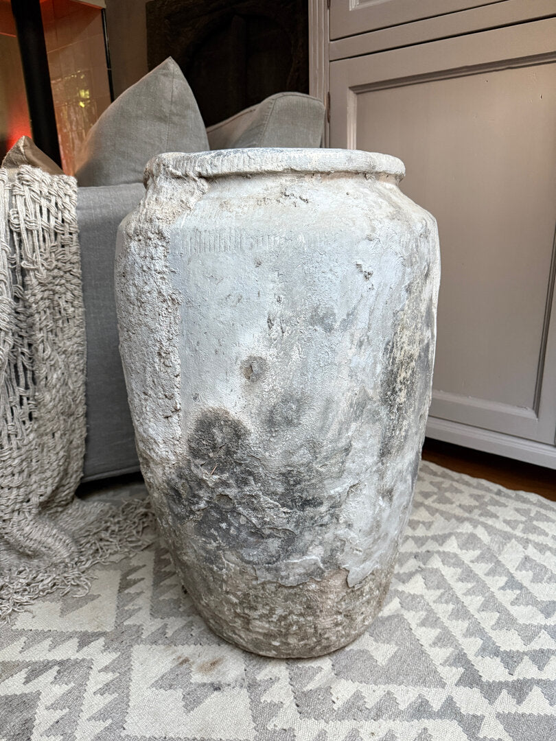 Veel mooier dan dit worden ze niet. Deze oude stenen kruik heeft echt een prachtige geleefde, unieke en sobere uitstraling. Een absolute eyecatcher in je interieur en een zeer uniek stuk. Heel goed te combineren in zeer veel interieur stijlen. Mooi op te maken met grote takken, magnolia of een grote toef. Maar eigenlijk heeft deze kruik niks nodig, hij is al perfect van zichzelf. Ook buiten misstaat deze geweldige grote kruik niet!