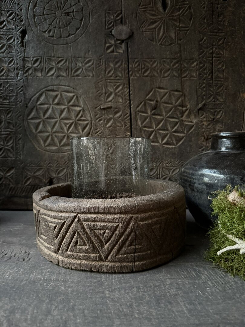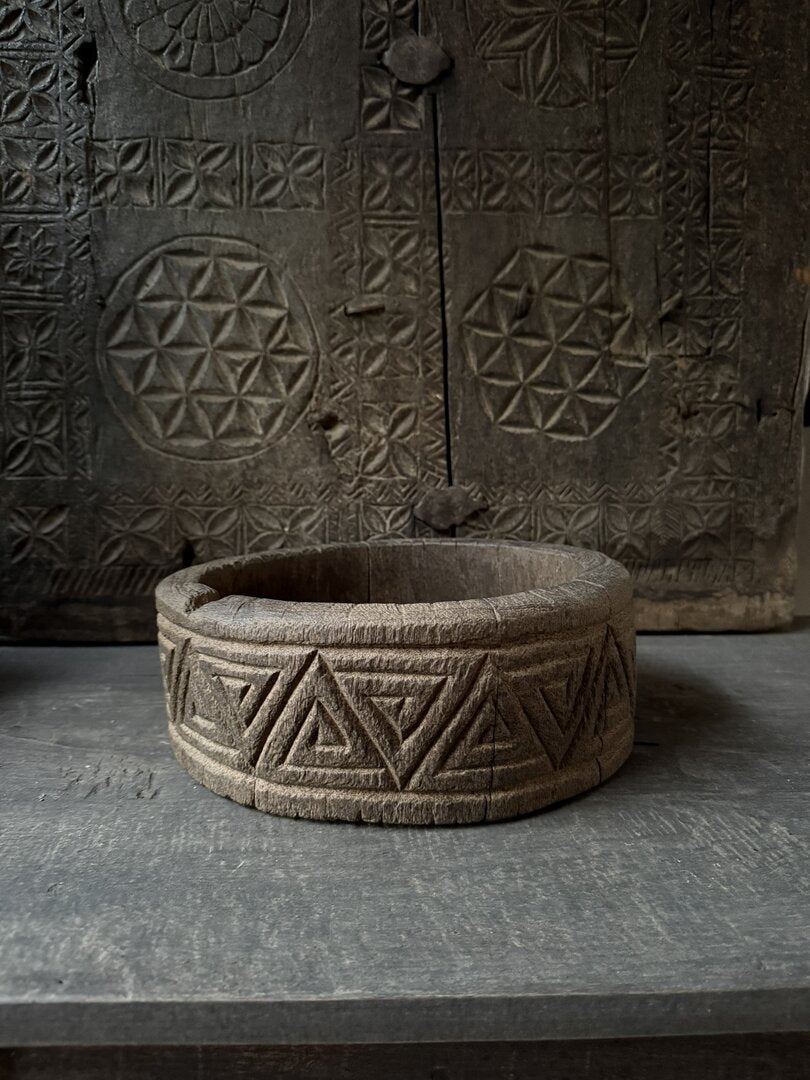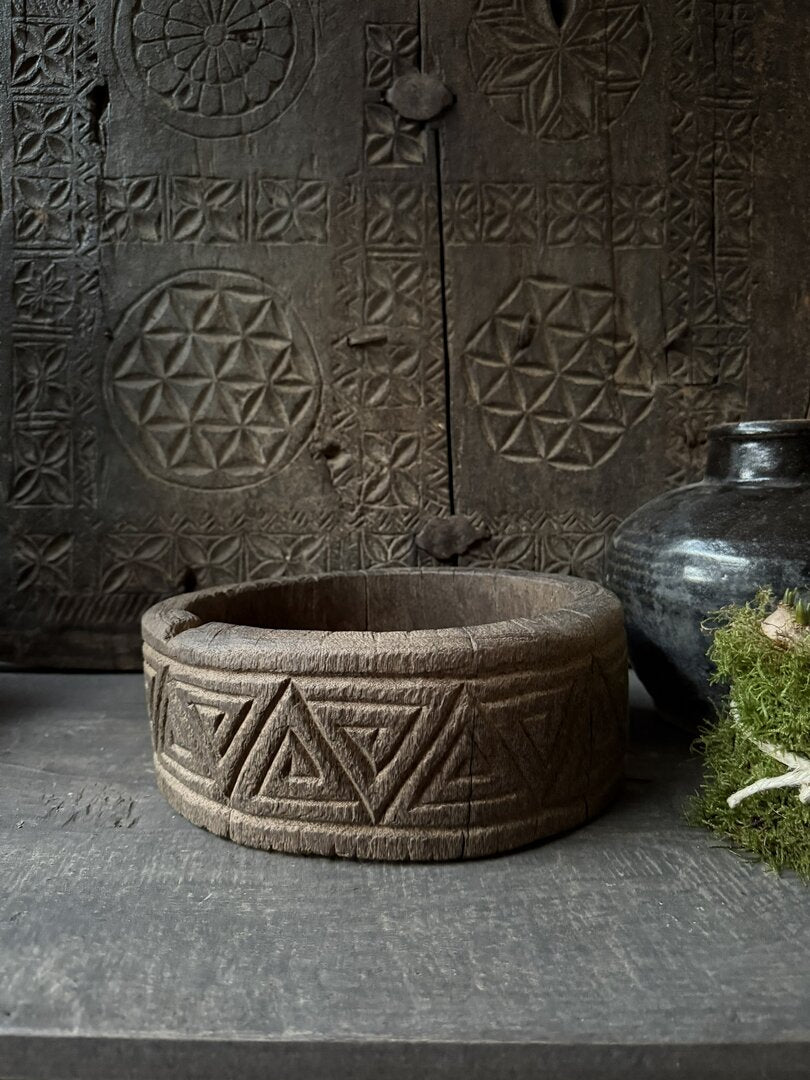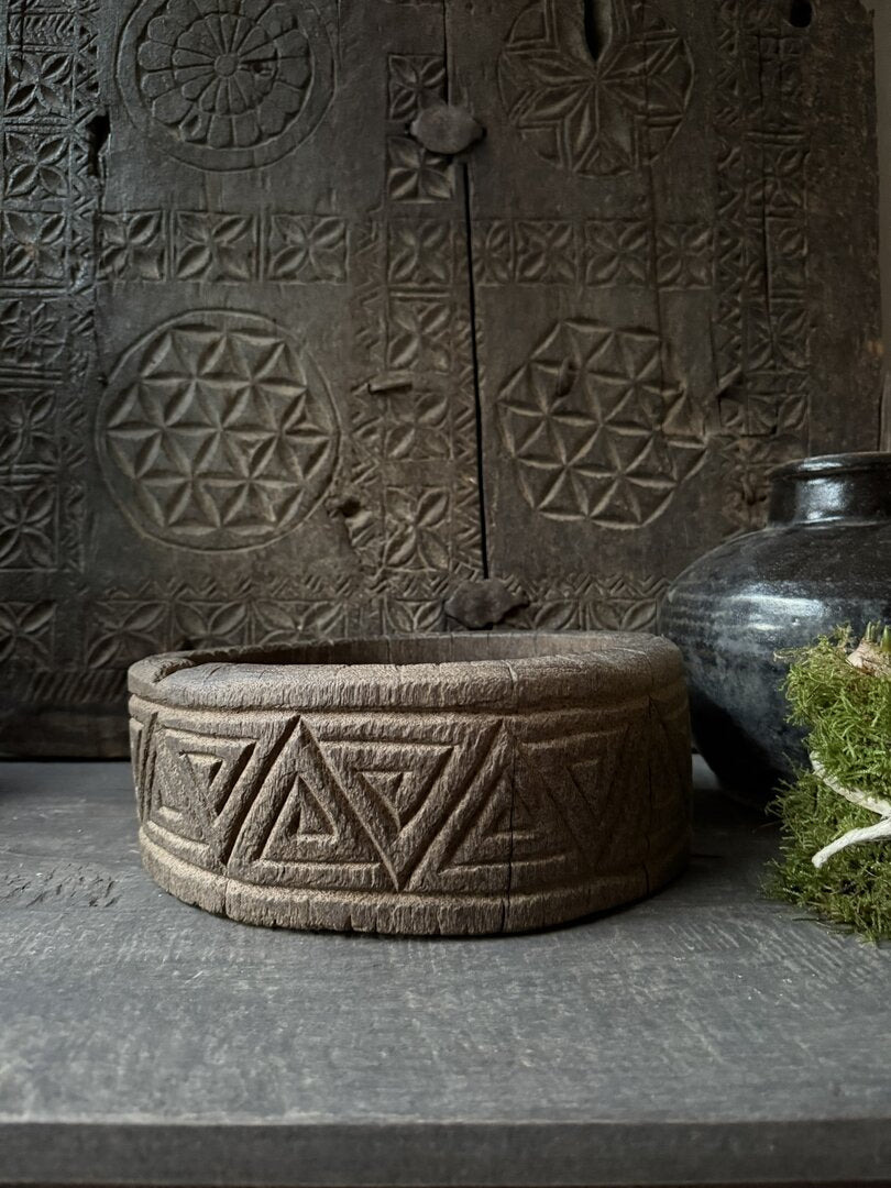 Een echte eyecatcher deze mooie zware oude houten schalen met houtsnijwerk. Mooi verweerd en robuust oud hout. Op vele manieren te stylen.