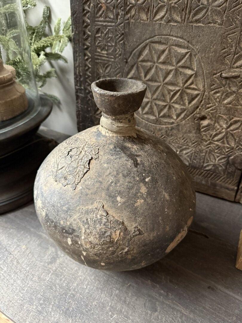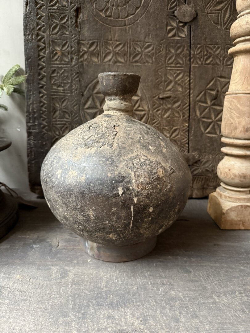 Deze tuimelkruikjes met smalle hals op ring zijn de definitie van sober als je het mij vraagt. De kruiken hebben een prachtig patina en zijn zeer oud verweerd. Ze hebben allemaal hun eigen details en hebben er echt een leven op zitten, zo zien ze er ook uit en dat maakt ze zo ontzettend mooi. Met deze kruikjes heeft u iets unieks en iets wat sfeer ademt in huis! De nieuwe must-have!