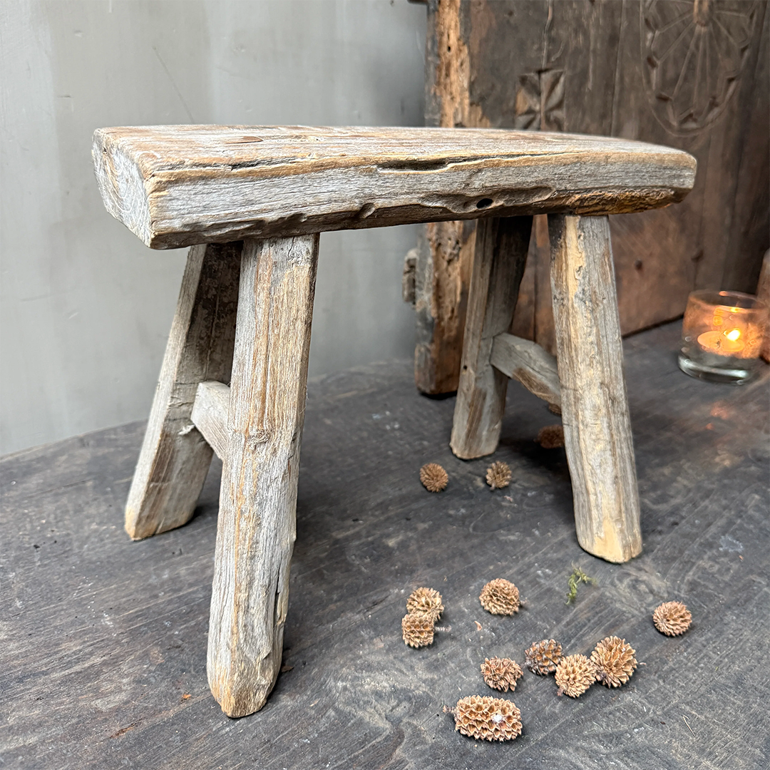 Diese kleinen, antiken chinesischen Fensterbänke/Babyhocker aus Holz sind einfach bezaubernd. Das Holz ist wunderschön verwittert – meiner Meinung nach eine perfekte Unvollkommenheit.