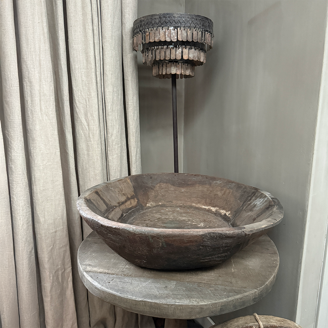 Wow, diese wunderschöne, große, alte Holzschale ist einfach traumhaft! Sie verleiht jedem Tisch sofort einen Hauch von Stil und sieht auch draußen auf dem Gartentisch einfach bezaubernd aus. Dekorieren Sie diese hübsche Schale mit der XL-Laterne von Puur Wonen oder füllen Sie sie mit nepalesischen Krügen, kleineren Laternen oder einem hübschen Wasserkrug. Die Schale ist aus wunderschön gealtertem Holz gefertigt.