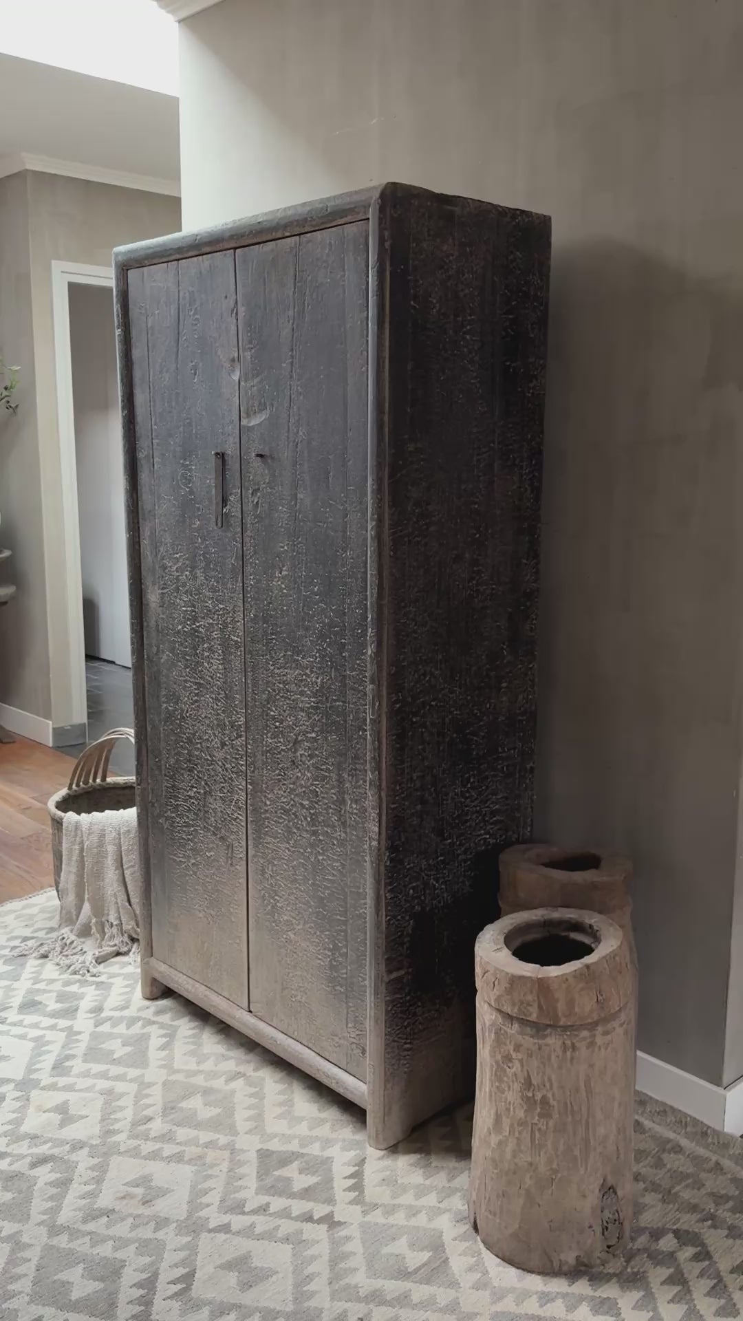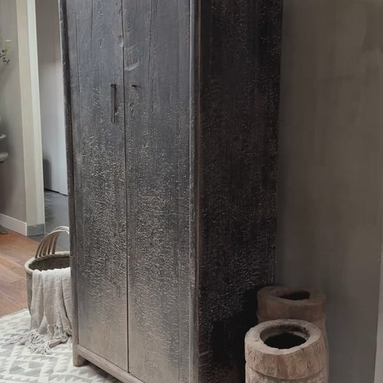 Dieser wunderschöne, alte, originale und authentische chinesische Schrank ist aus wunderschön gealtertem Ulmenholz gefertigt und besticht durch seine Scharniertüren und den eleganten Metallverschluss! Hergestellt in China – ein wahres Meisterstück! Dieser atemberaubende Schrank erzählt eine Geschichte und ist ein Unikat. Er ist nicht nur wunderschön, sondern bietet auch drei Regalböden. Sie werden kaum ein schöneres Stück finden. Die einzigartige Kultur, die Bräuche und Traditionen Chinas sind überall spürbar; erleben Sie die Vergangenheit hautnah!
