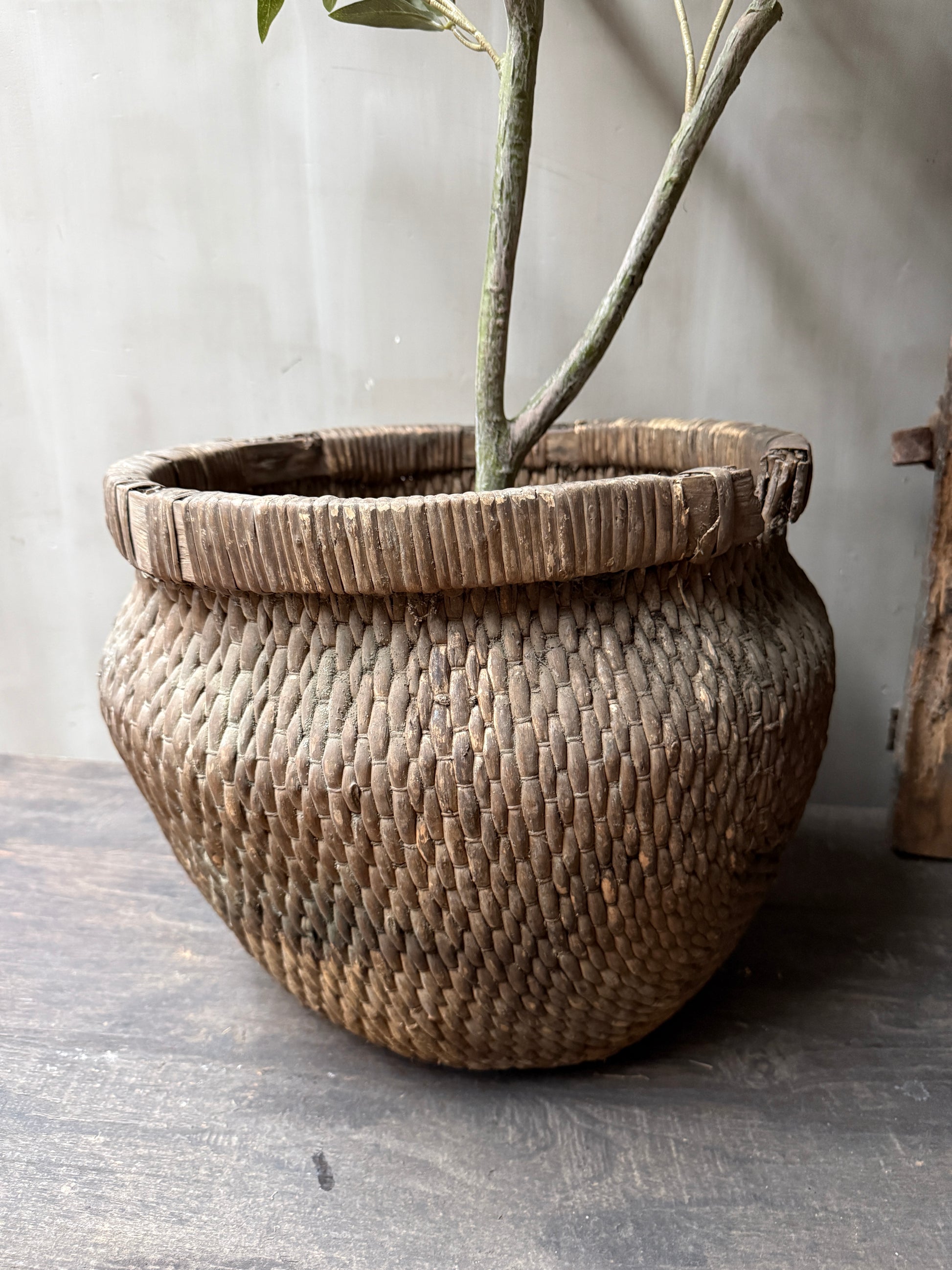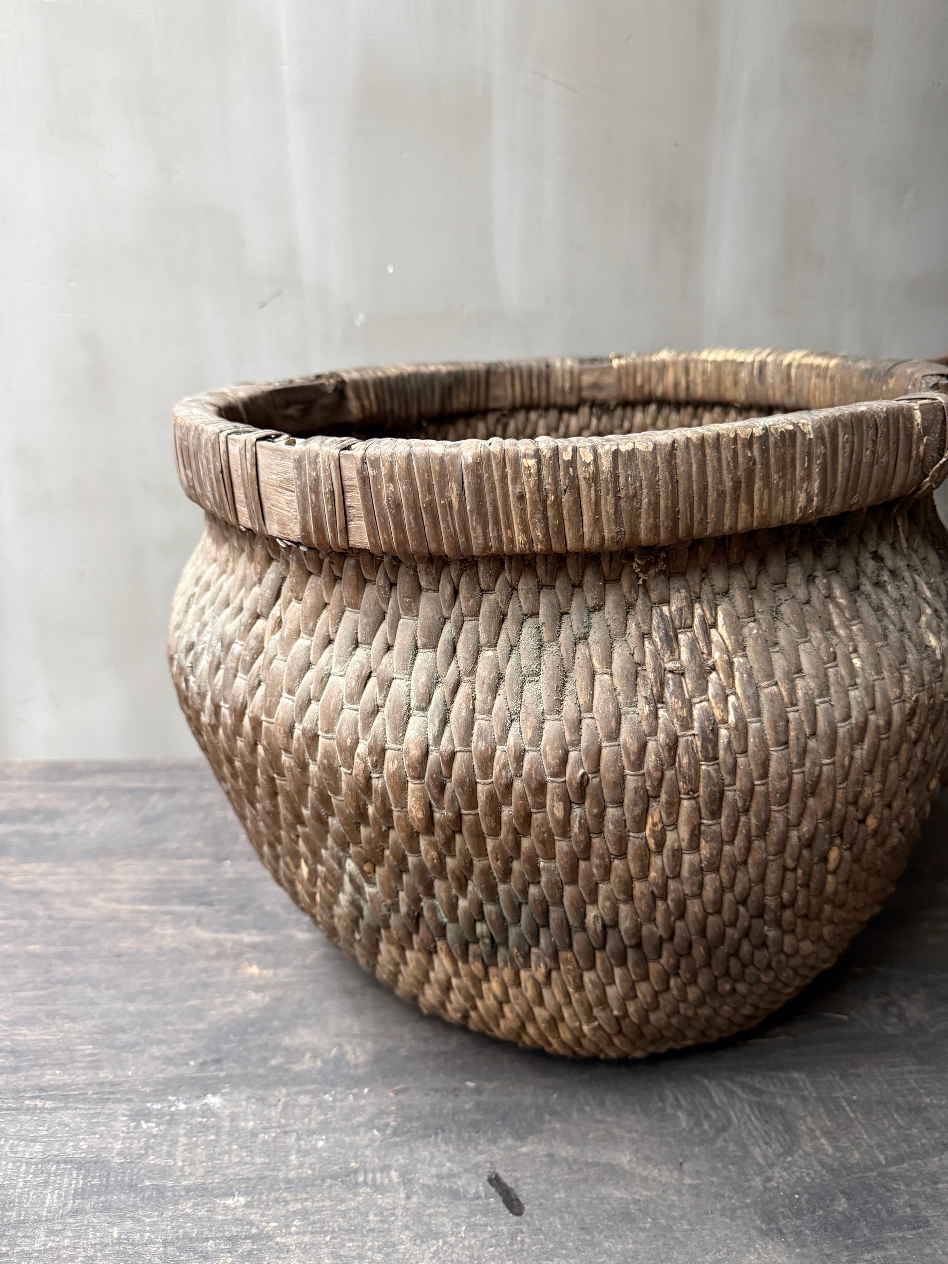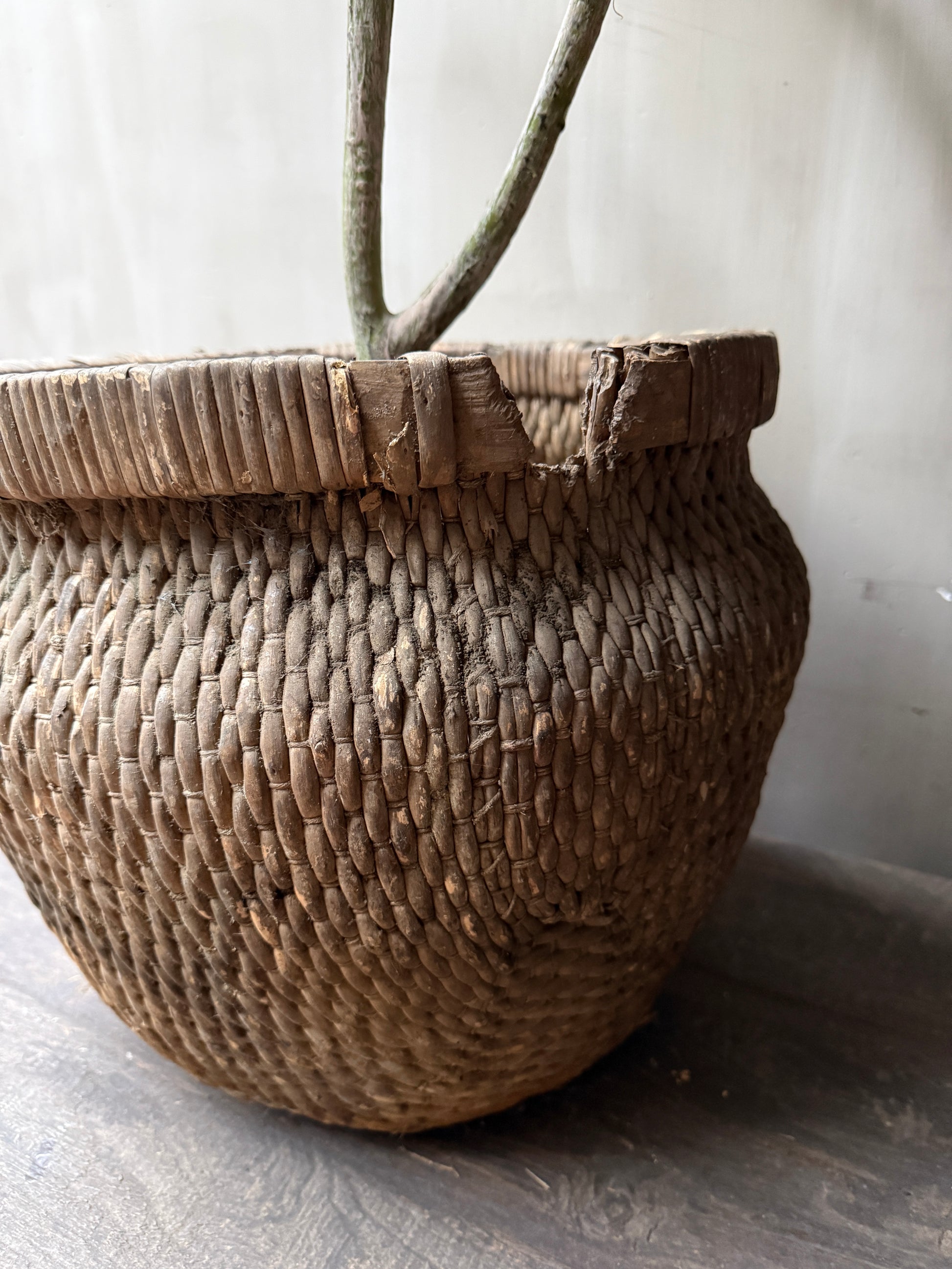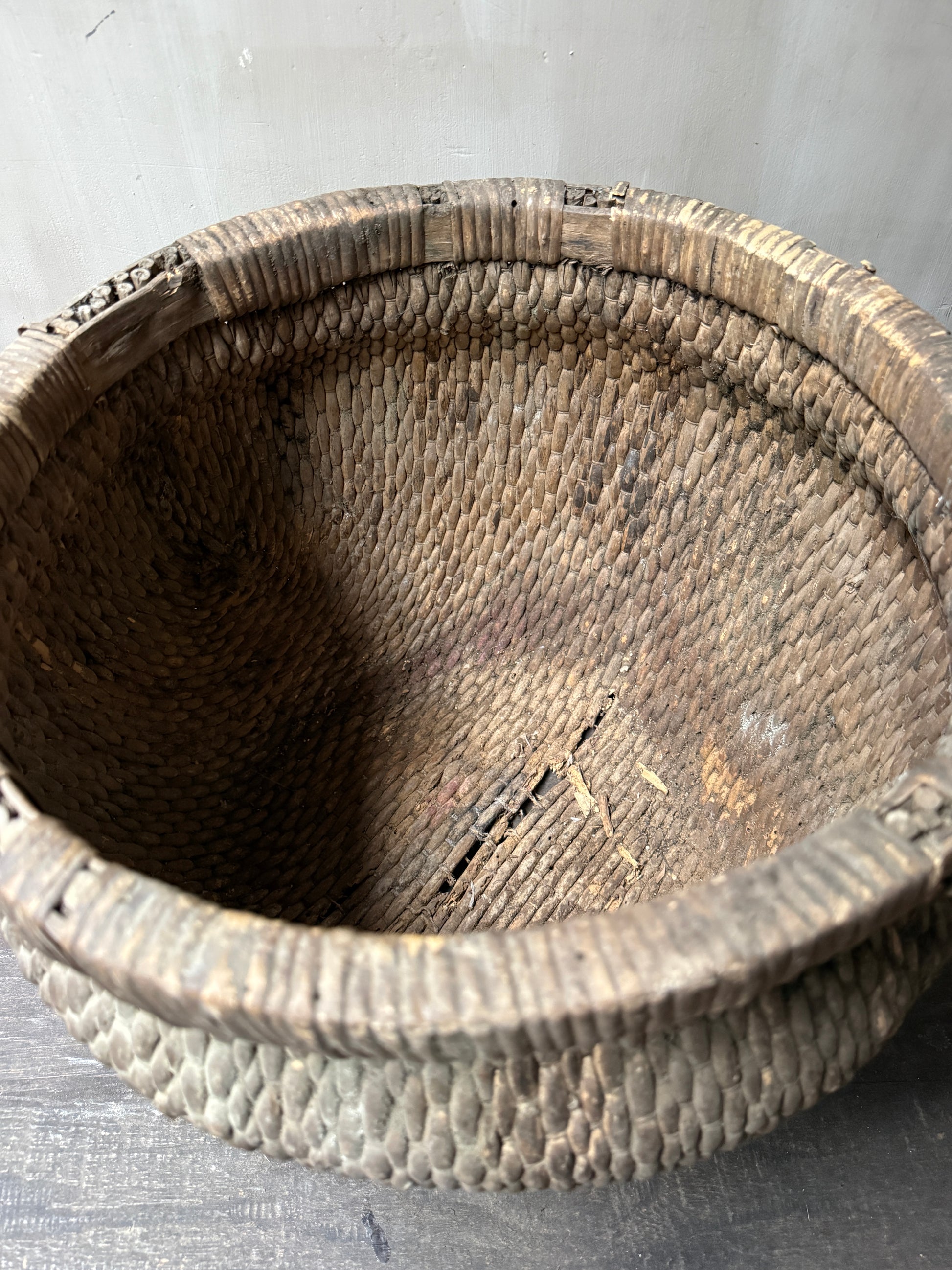 Wunderschöner alter chinesischer Weidenkorb. Der Korb hat eine schöne graue Farbe. Alle Körbe sind handgefertigt und somit Unikate.