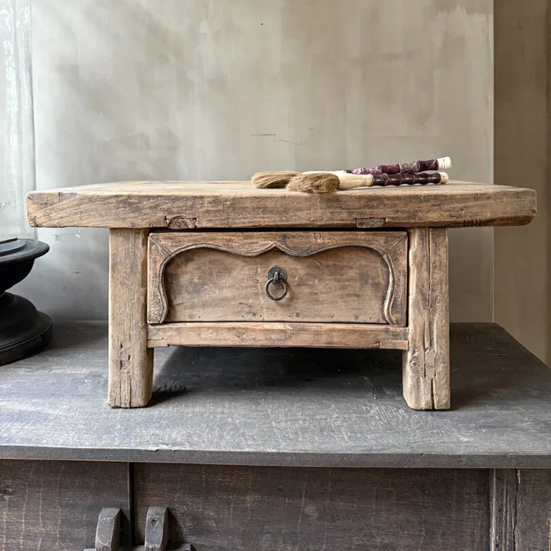 Wunderschöner, originaler chinesischer Tisch mit Schublade. Kleiner, origineller Kaffee-/Schreibtisch aus wunderschön gealtertem Holz. Ein einzigartiges Stück, das mit den Jahren nur noch schöner geworden ist.
