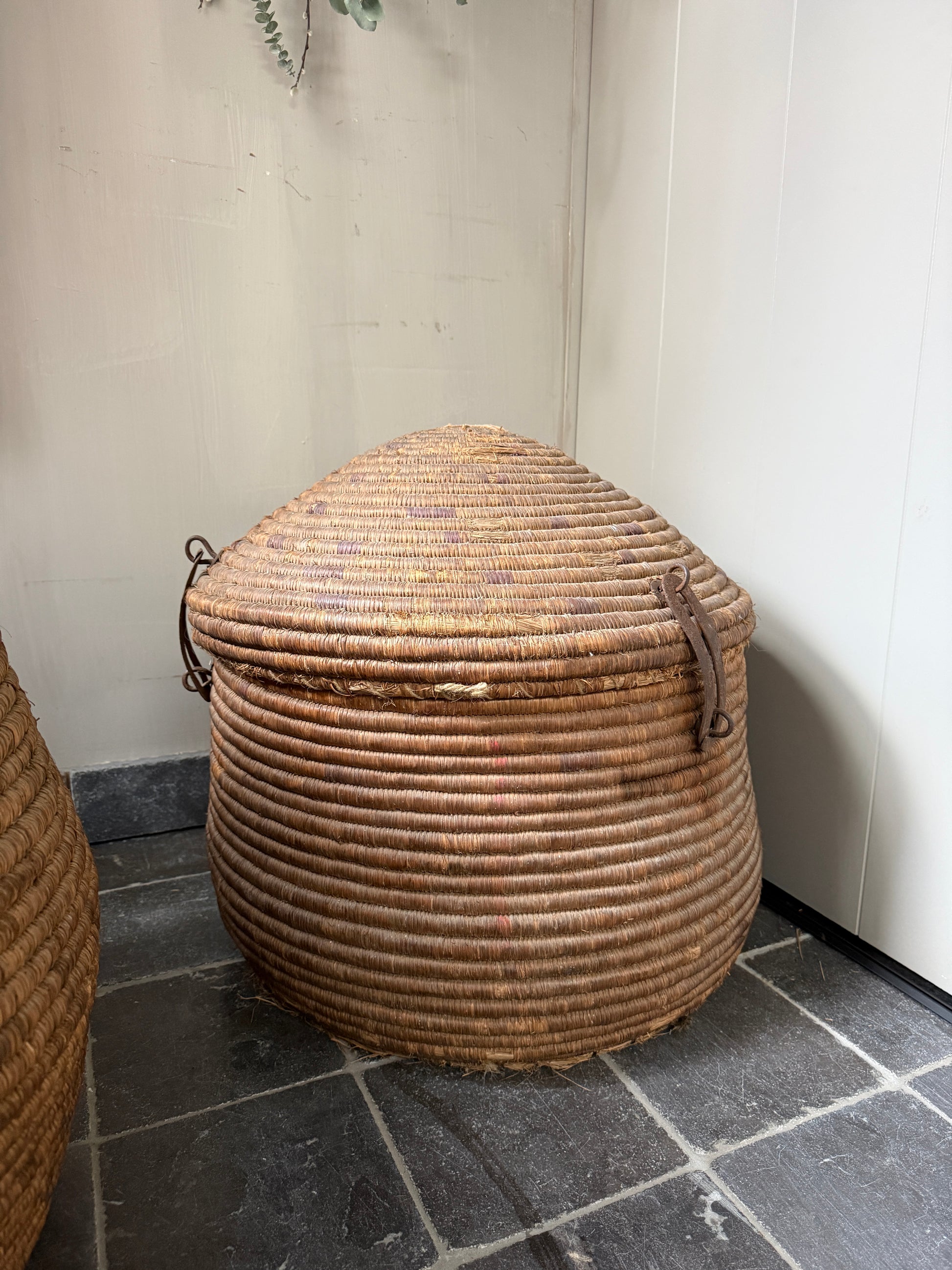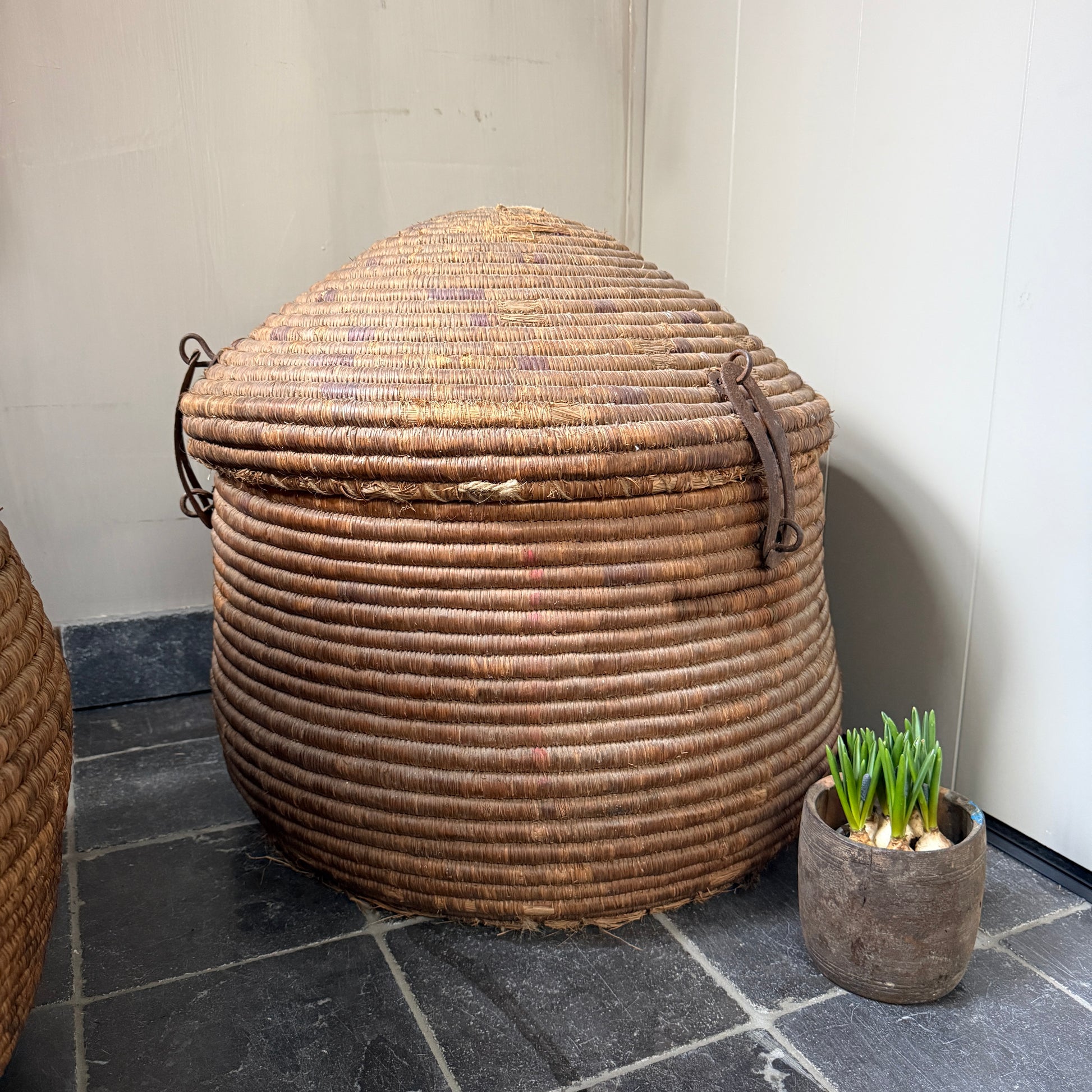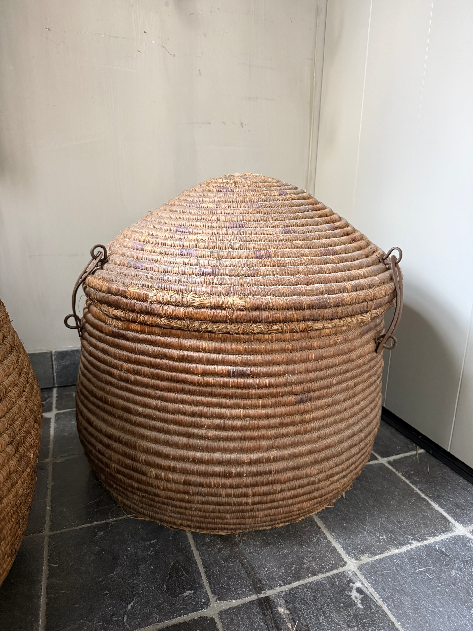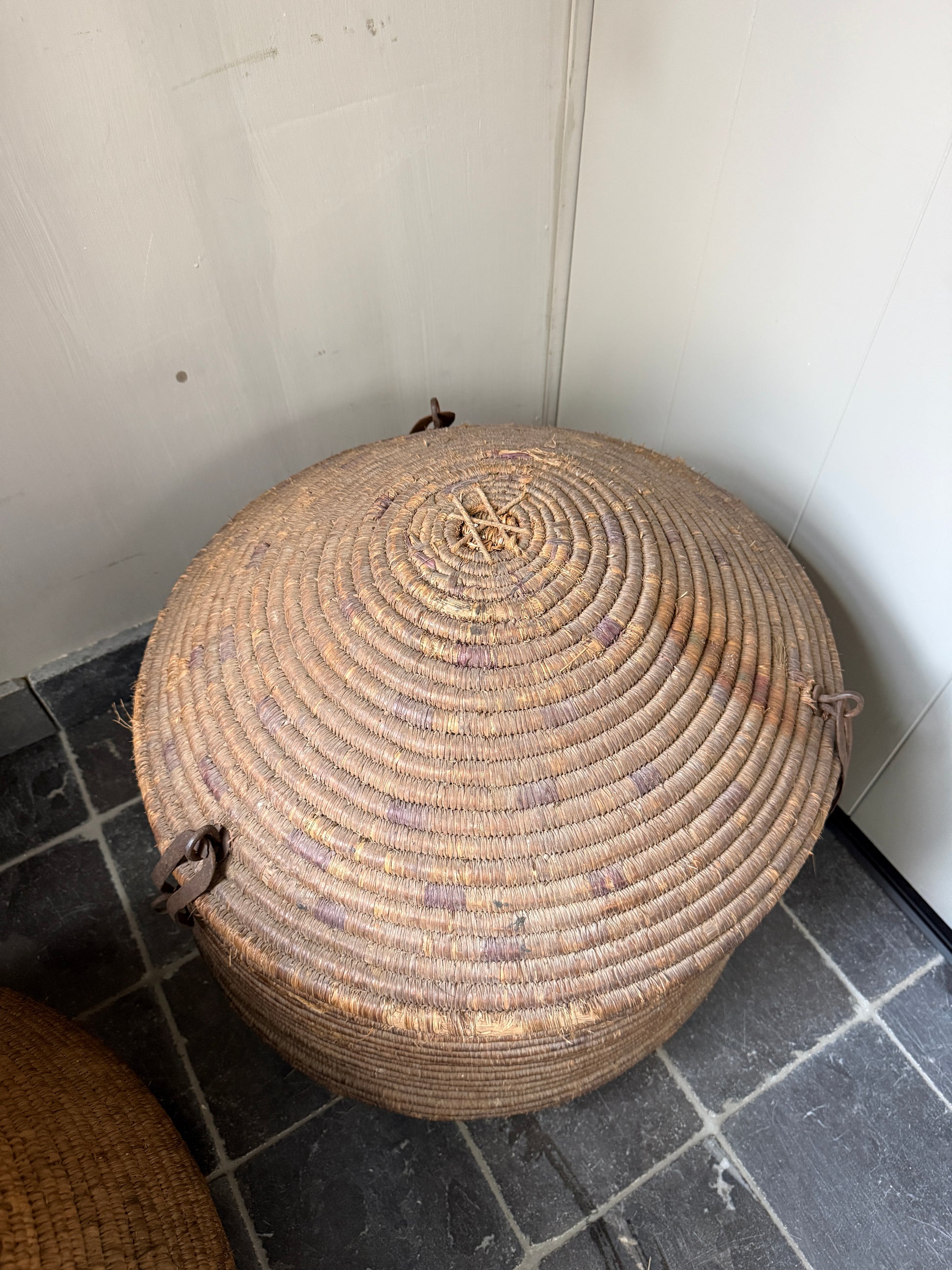 Ein wunderschöner, origineller, großer antiker Korb mit Deckel, der schon etwas verwittert ist und sich auch als Dessertkorb eignet. Er erinnert mich ein wenig an einen Korb mit einer Schlange. Ein echter Hingucker! Der Korb hat eine wunderschöne, verwitterte Farbe. Jeder dieser Körbe ist ein Unikat.