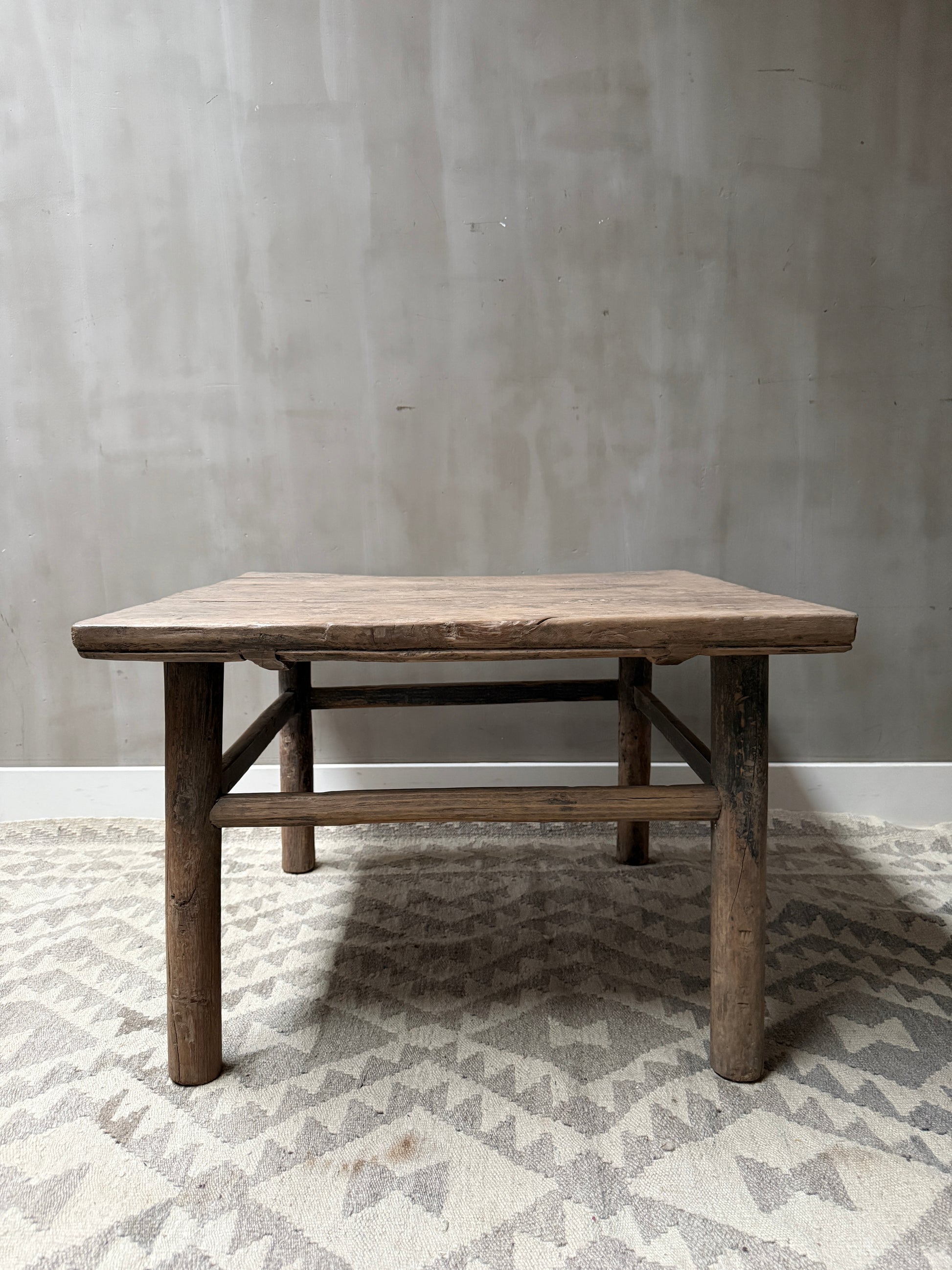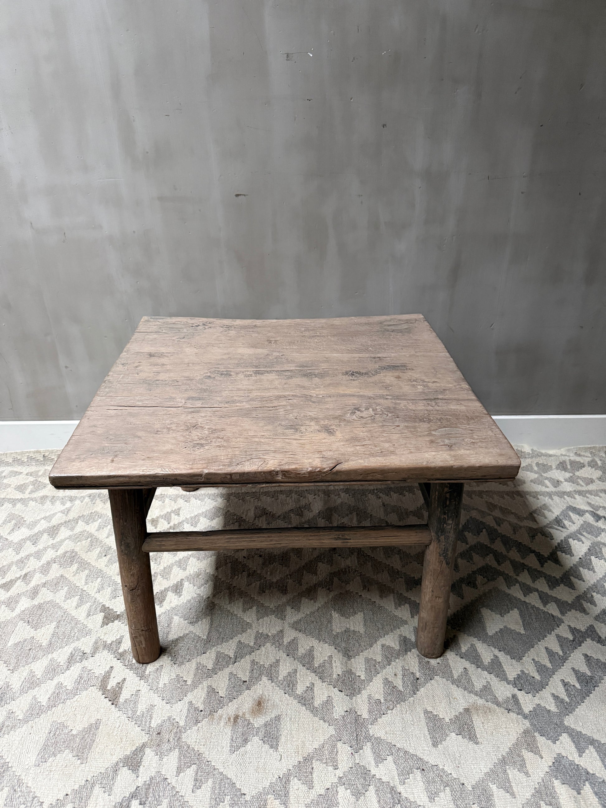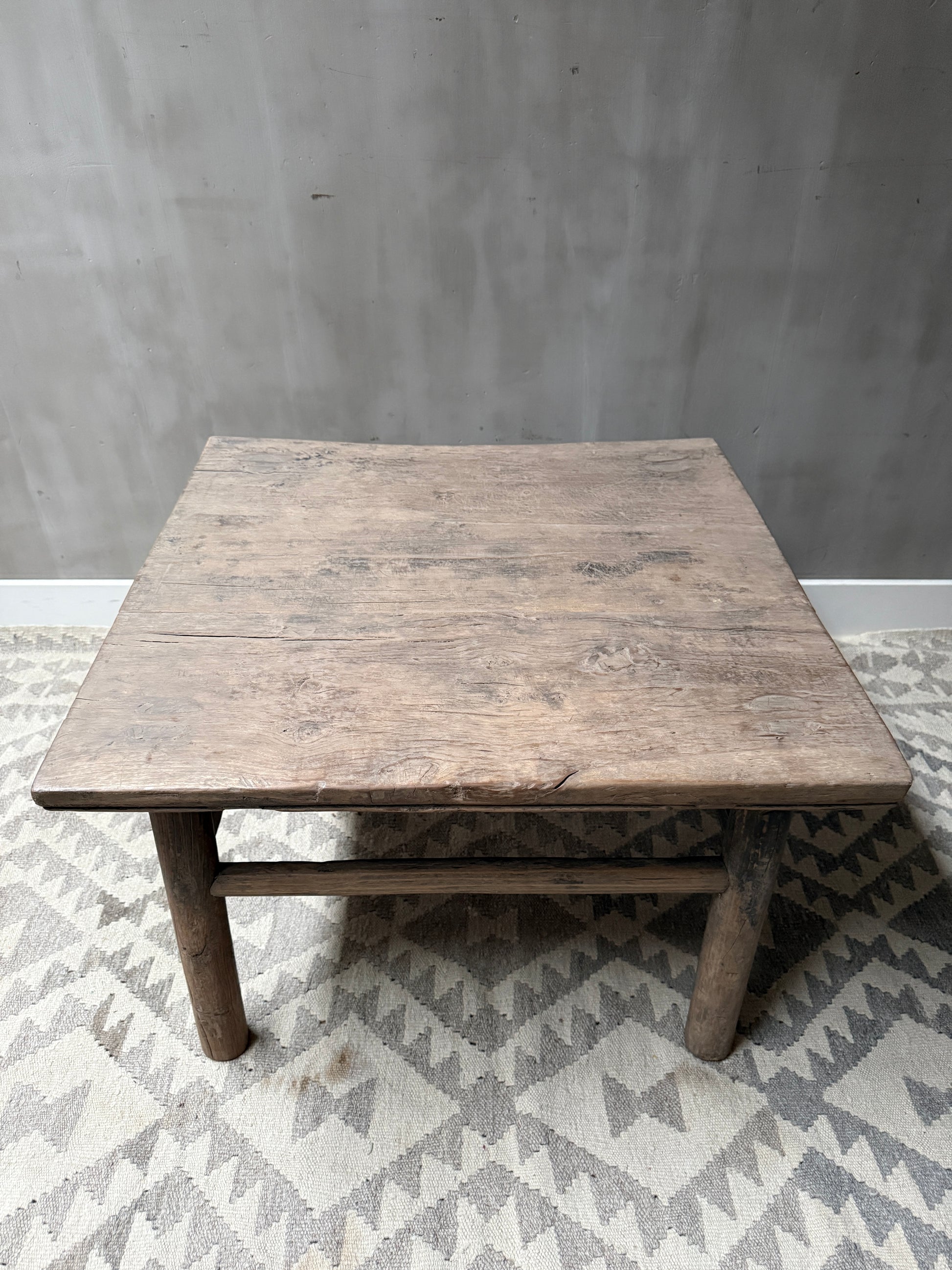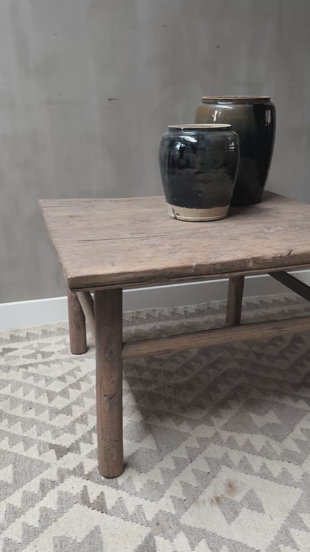 Dieser wunderschöne, authentische alte Tisch ist aus recyceltem Ulmenholz gefertigt. Ein Tisch wie dieser vereint alles, was ich liebe: Charakter, Seele und eine unvergleichliche Ausstrahlung. Die Spuren der Zeit sind in jeder Maserung, jeder Verfärbung und jedem Detail sichtbar. Jede Unvollkommenheit im Holz ist wie eine Erinnerung, der Beweis, dass dieser Tisch gelebt hat. Genau das macht ihn so rein und kostbar. Wabi-Sabi in seiner schönsten Form. Dies ist kein Möbelstück. Dies ist eine Geschichte. Und es gibt nur diese eine. Wunderschön als Couchtisch, aber auch als Beistelltisch.