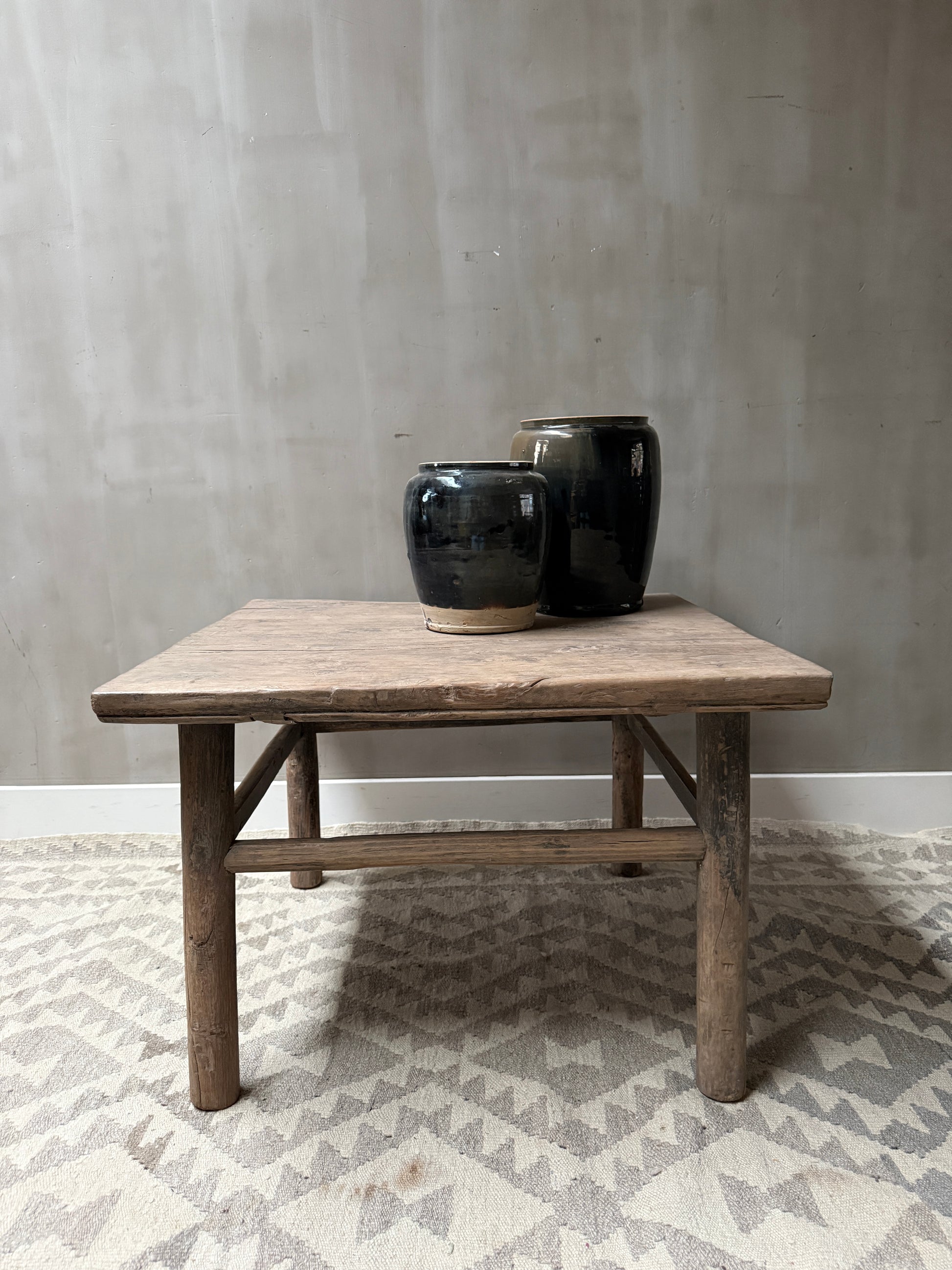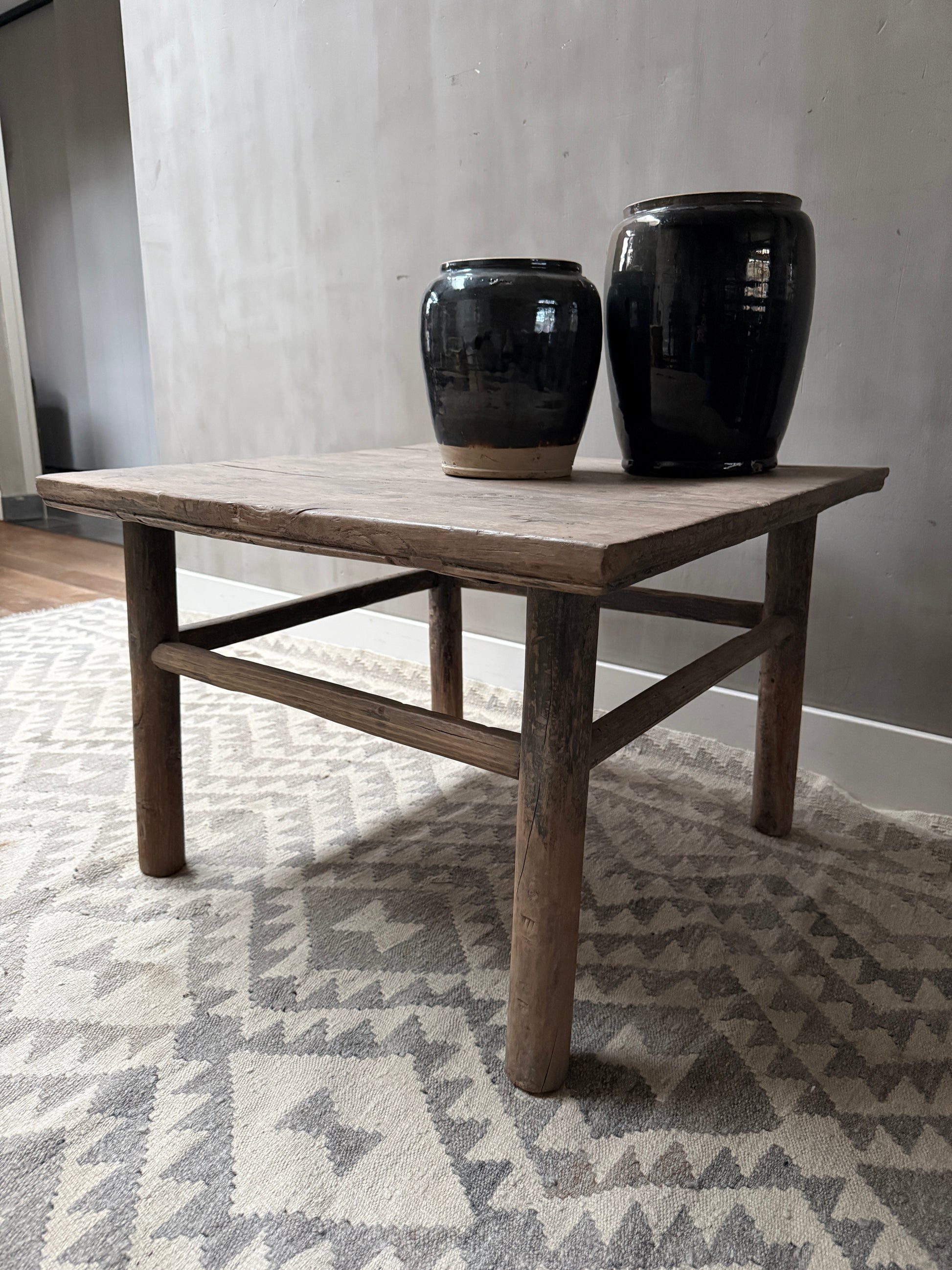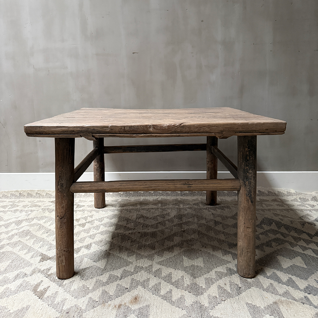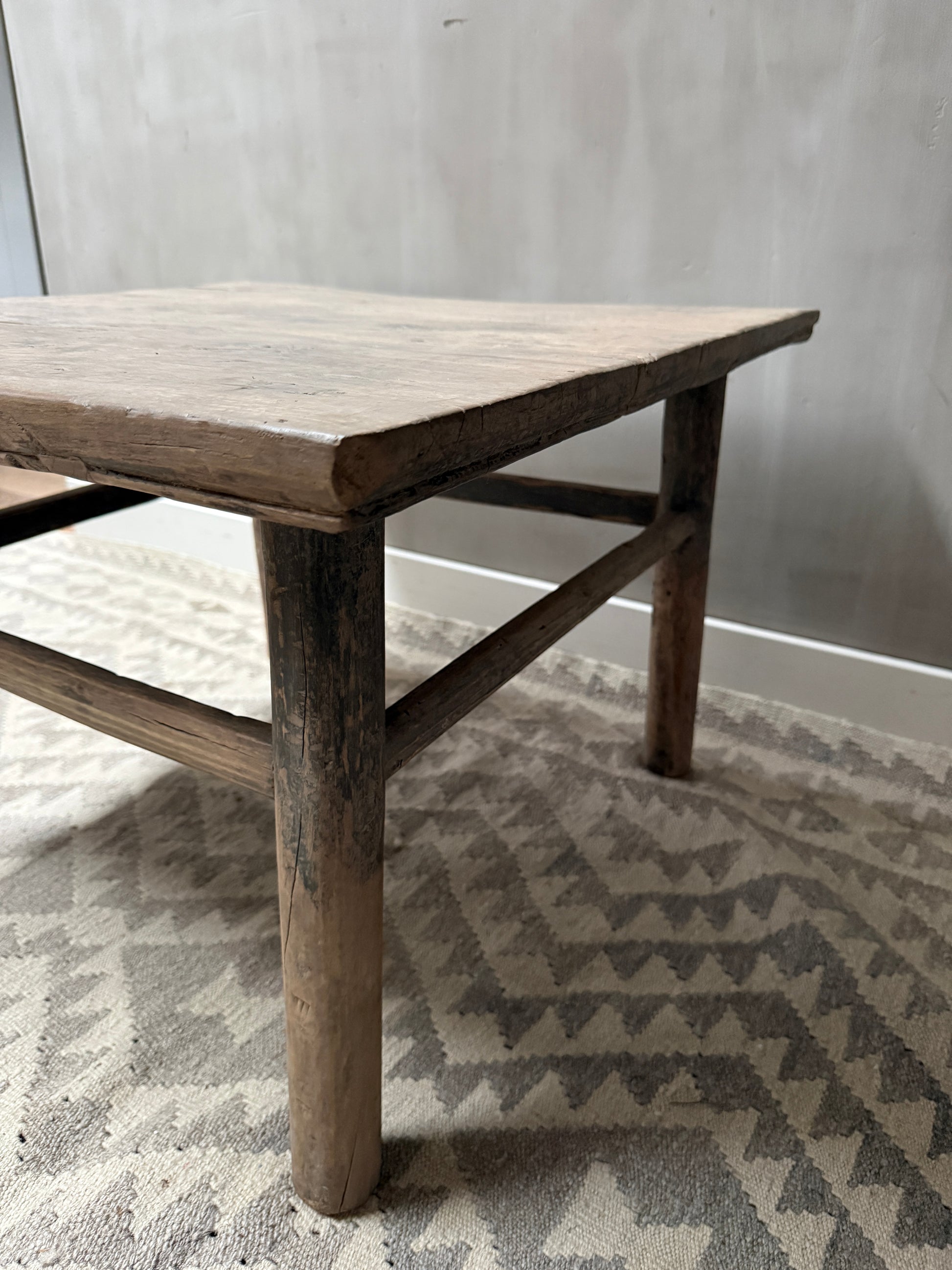 Dieser wunderschöne, authentische alte Tisch ist aus recyceltem Ulmenholz gefertigt. Ein Tisch wie dieser vereint alles, was ich liebe: Charakter, Seele und eine unvergleichliche Ausstrahlung. Die Spuren der Zeit sind in jeder Maserung, jeder Verfärbung und jedem Detail sichtbar. Jede Unvollkommenheit im Holz ist wie eine Erinnerung, der Beweis, dass dieser Tisch gelebt hat. Genau das macht ihn so rein und kostbar. Wabi-Sabi in seiner schönsten Form. Dies ist kein Möbelstück. Dies ist eine Geschichte. Und es gibt nur diese eine. Wunderschön als Couchtisch, aber auch als Beistelltisch.