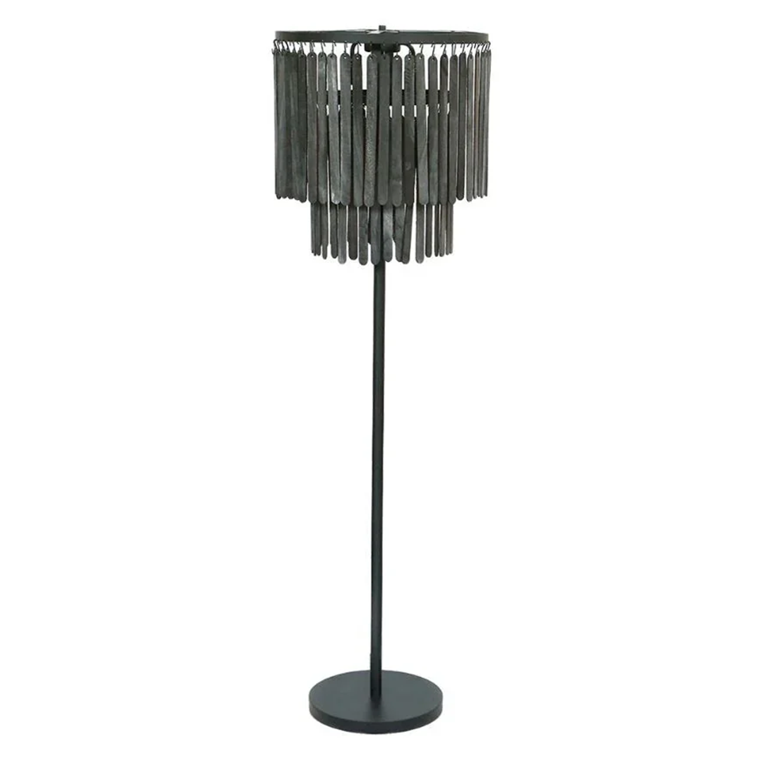 Eine wunderschöne Stehlampe mit mattschwarzem Metallgestell und Holzelementen wie den Aufhängeleisten. Sie passt perfekt in ein rustikales und zurückhaltendes Interieur, aber auch in einen moderneren und eleganteren Stil. Beleuchtet setzt sie ein atemberaubendes Lichtspiel an der Wand. Pendelleuchten dieser Serie sind ebenfalls in drei verschiedenen Größen erhältlich (Ø 40, Ø 50 und Ø 60 cm).