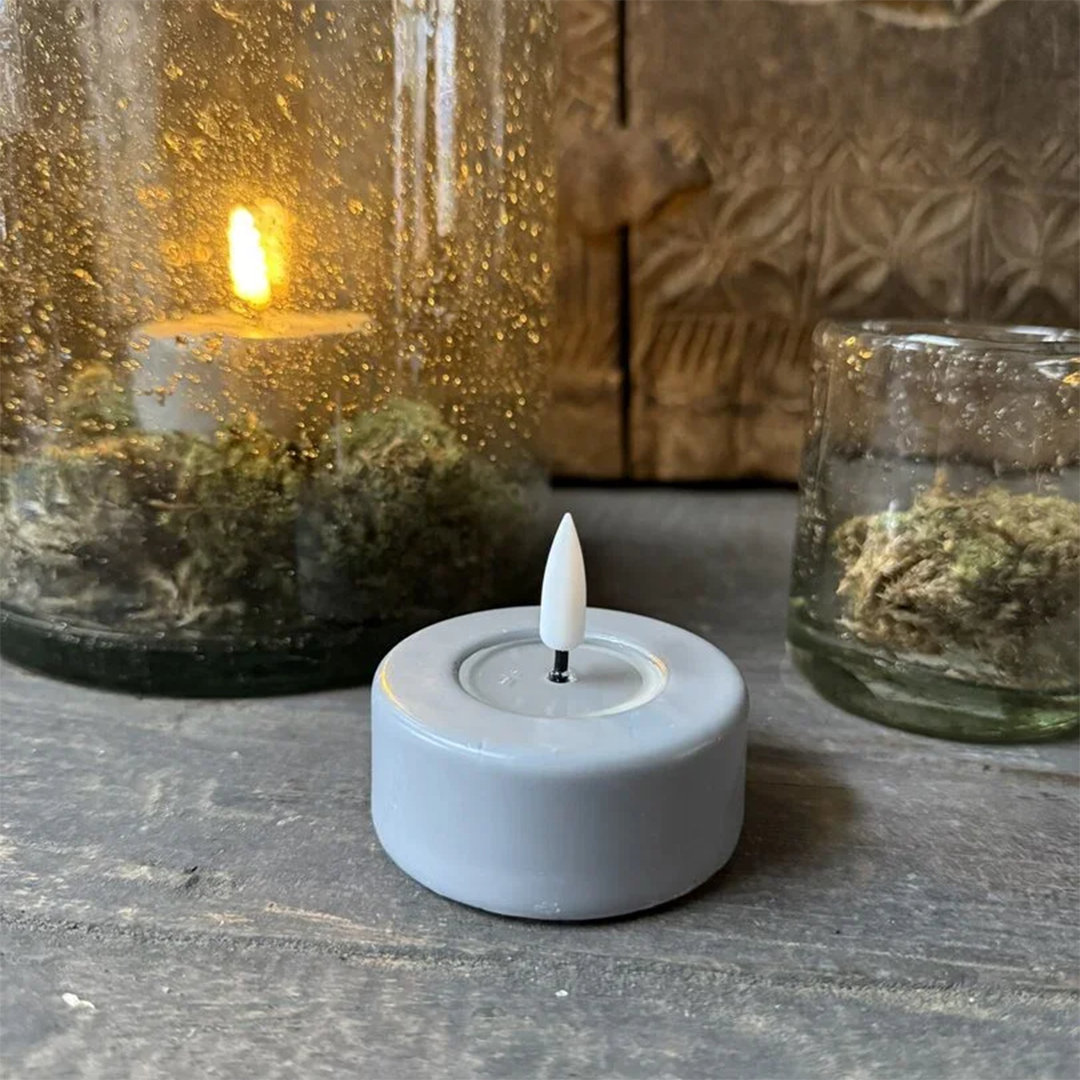 Teelichtwachs-LED grau Jumbo (2 Stück)