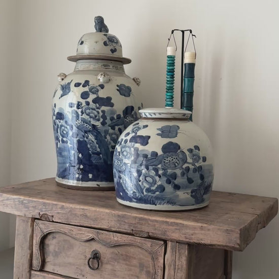 Wil je iets unieks in huis, zoek niet verder! Deze prachtige antieke blauw- witte Chinese porseleine potten zijn absoluut uniek. Deze potten worden handgemaakt en handgeschilderd. Wist je dat deze potten de voorloper zijn van het beroemde Delfts-blauwe porselein?