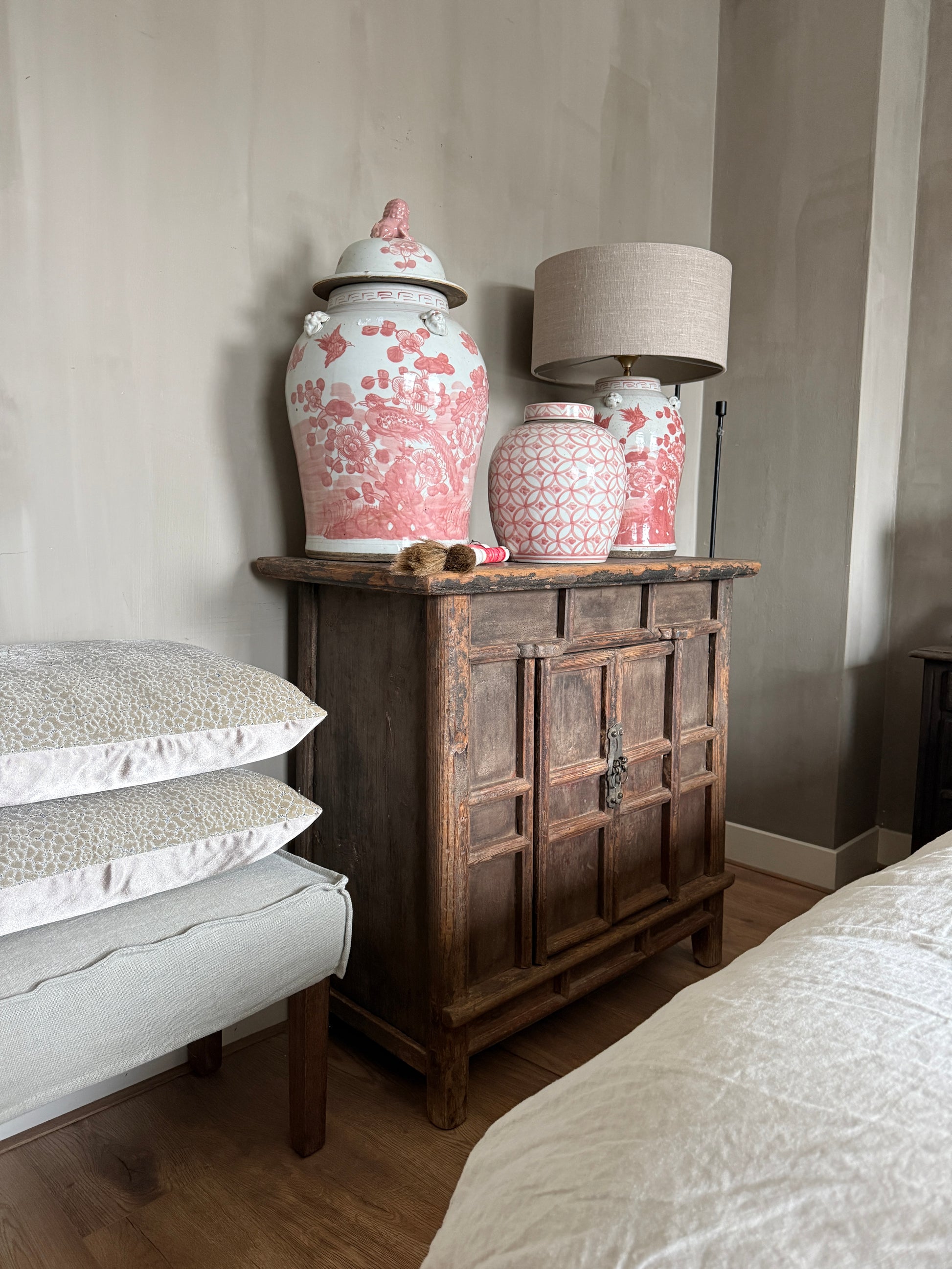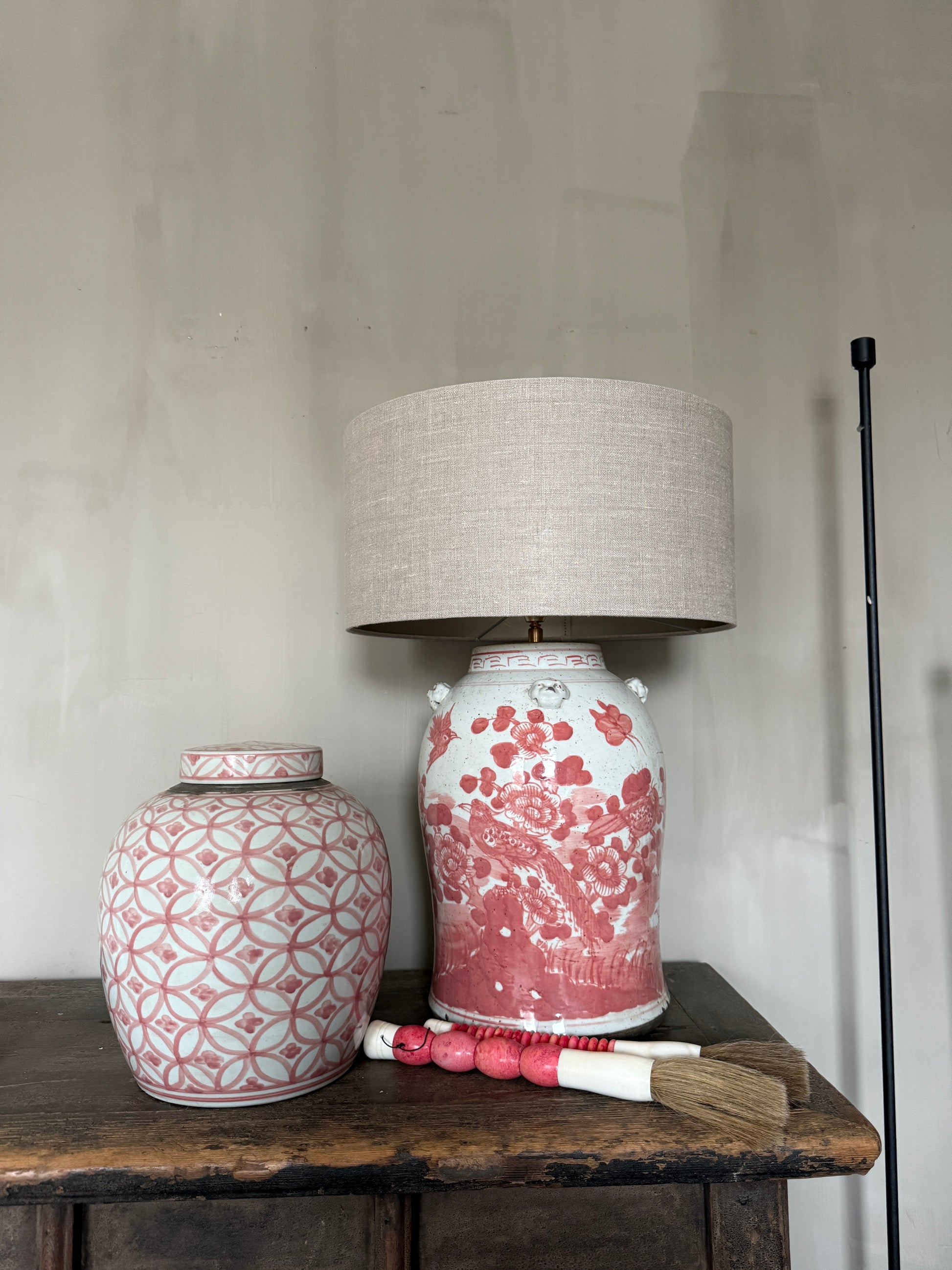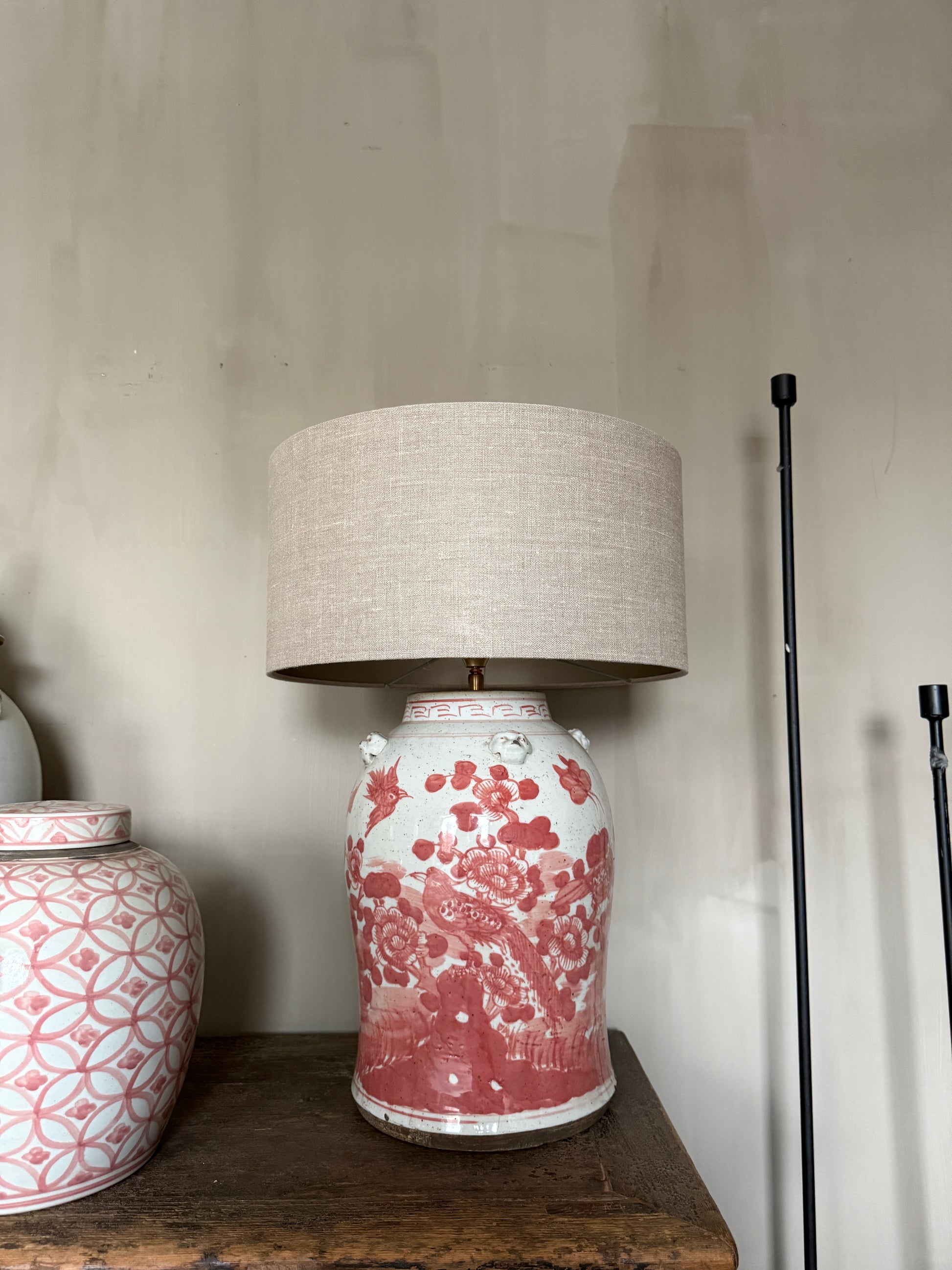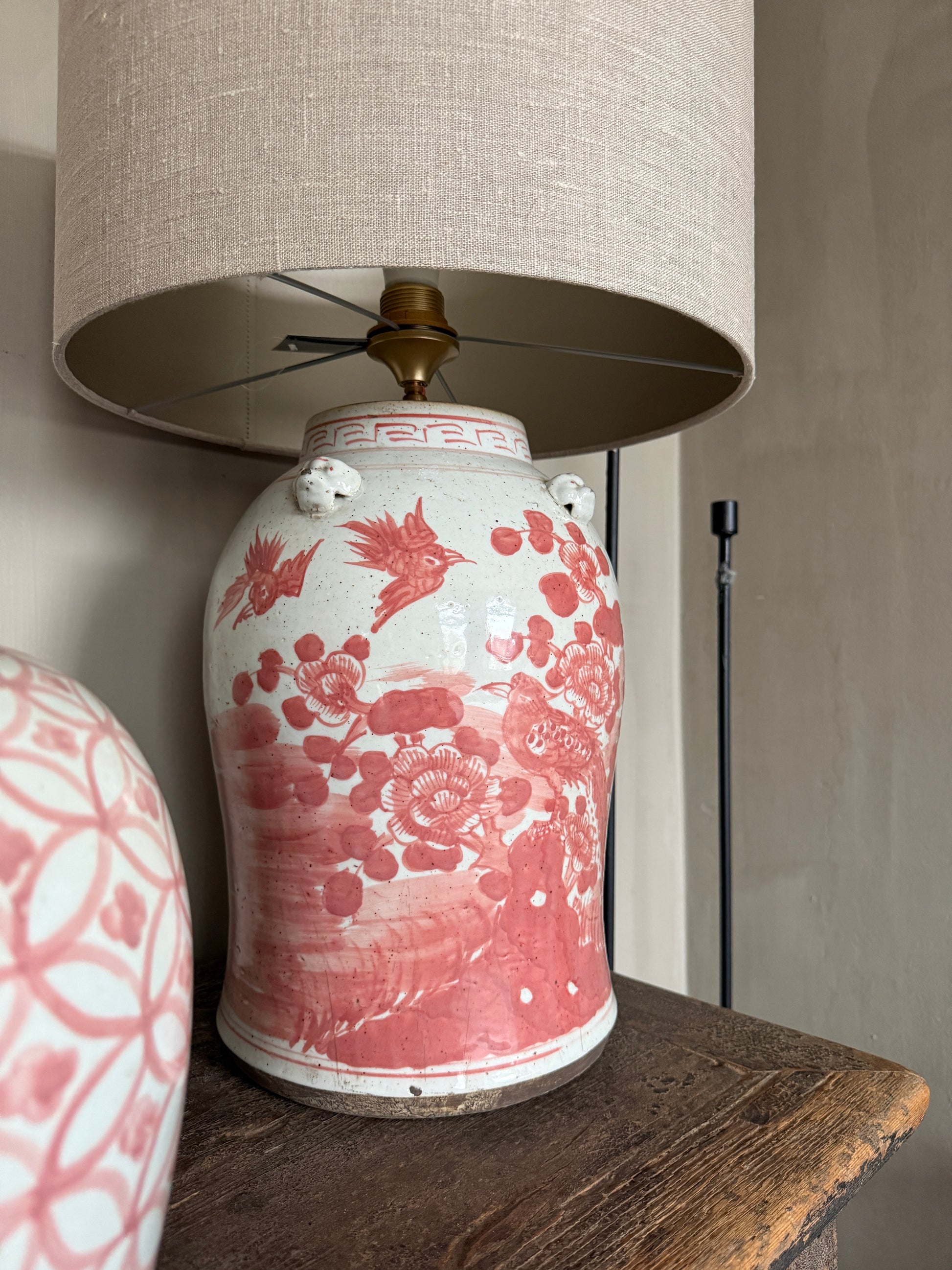 Wil je iets unieks in huis, zoek niet verder! Deze prachtige antieke roze- witte Chinese porseleine lamp is absoluut uniek. Deze potten worden handgemaakt en handgeschilderd. Wist je dat deze potten de voorloper zijn van het beroemde Delfts-blauwe porselein?