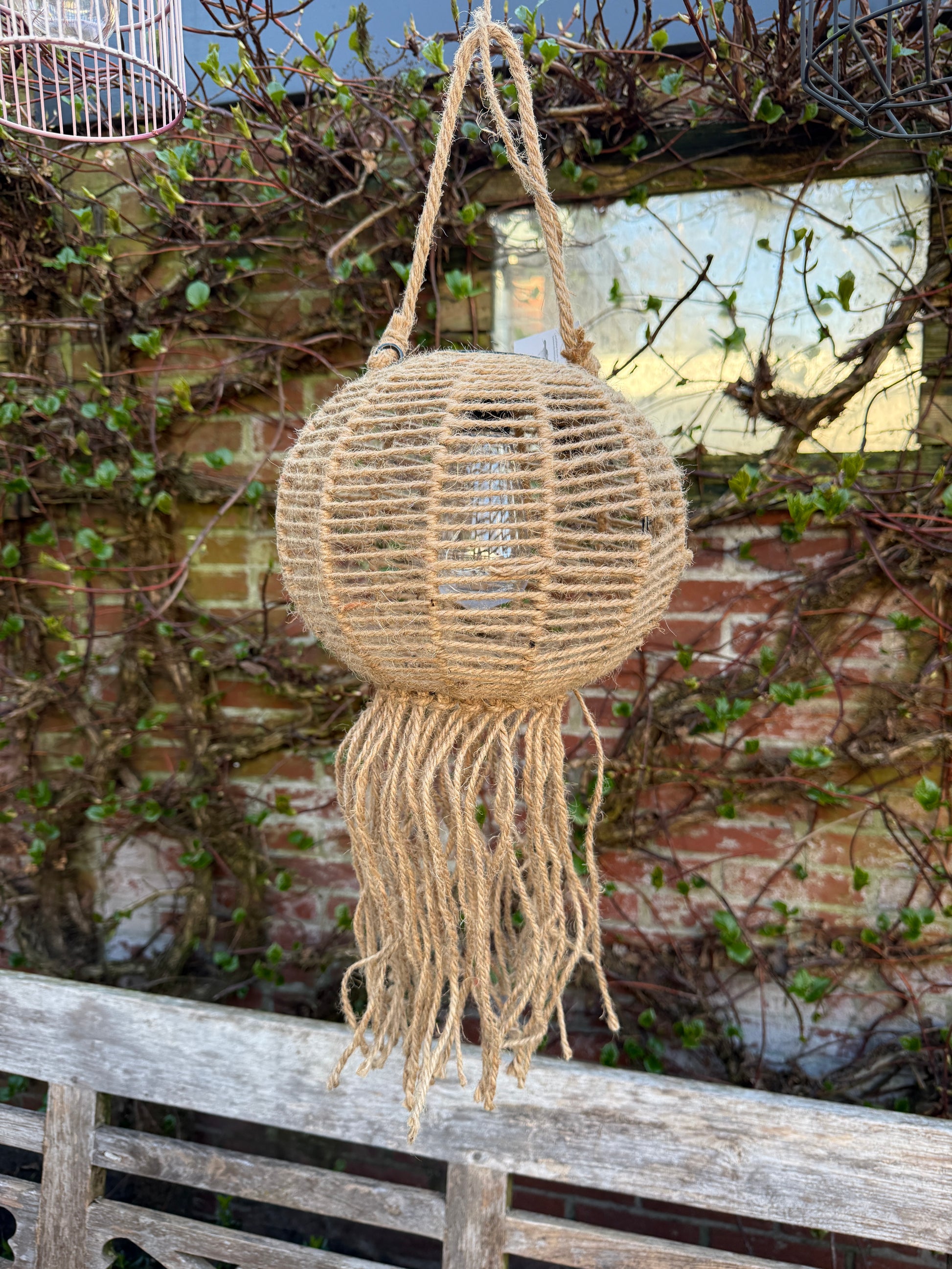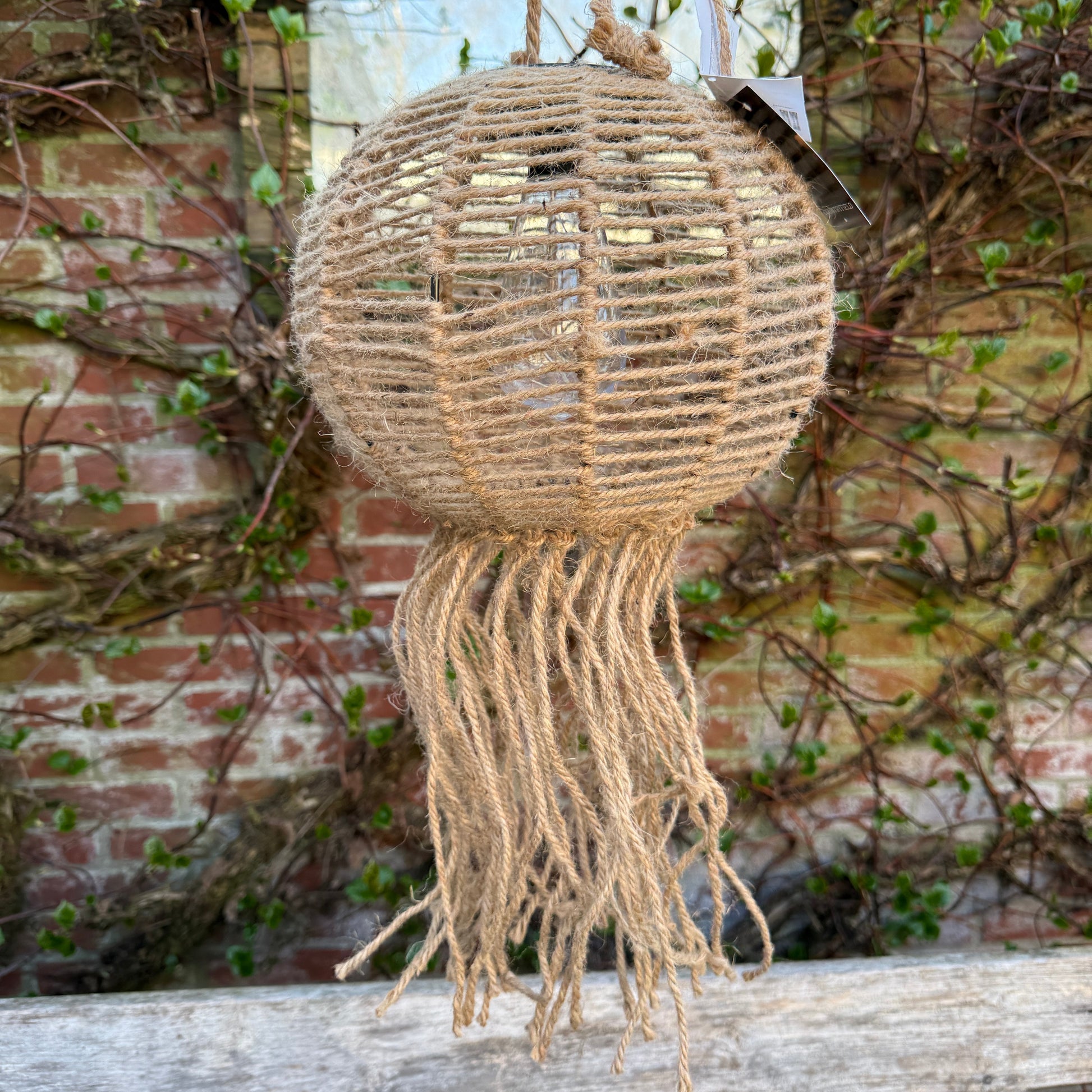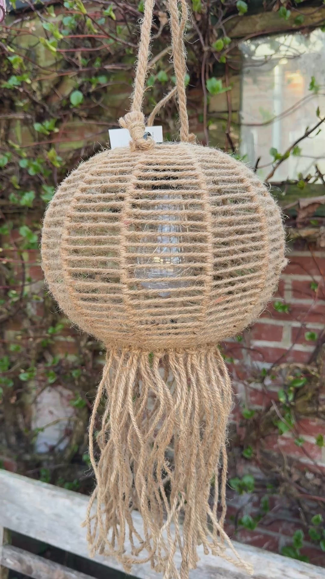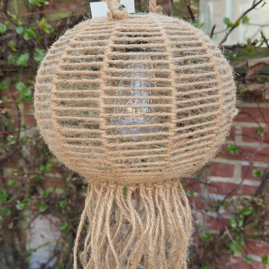 Prachtige solar hanglamp voor buiten. Overdag bij daglicht laden de lampjes zich op om zo gauw als het schemerig word heel sfeervol te branden. Zo haal je nog meer sfeer ook naar buiten voor de fijne zomeravonden tot laat buiten. De lamp is van jute en heeft leuke franjes aan de onderkant, heel feestelijk en helemaal op en tot zomer vibes.