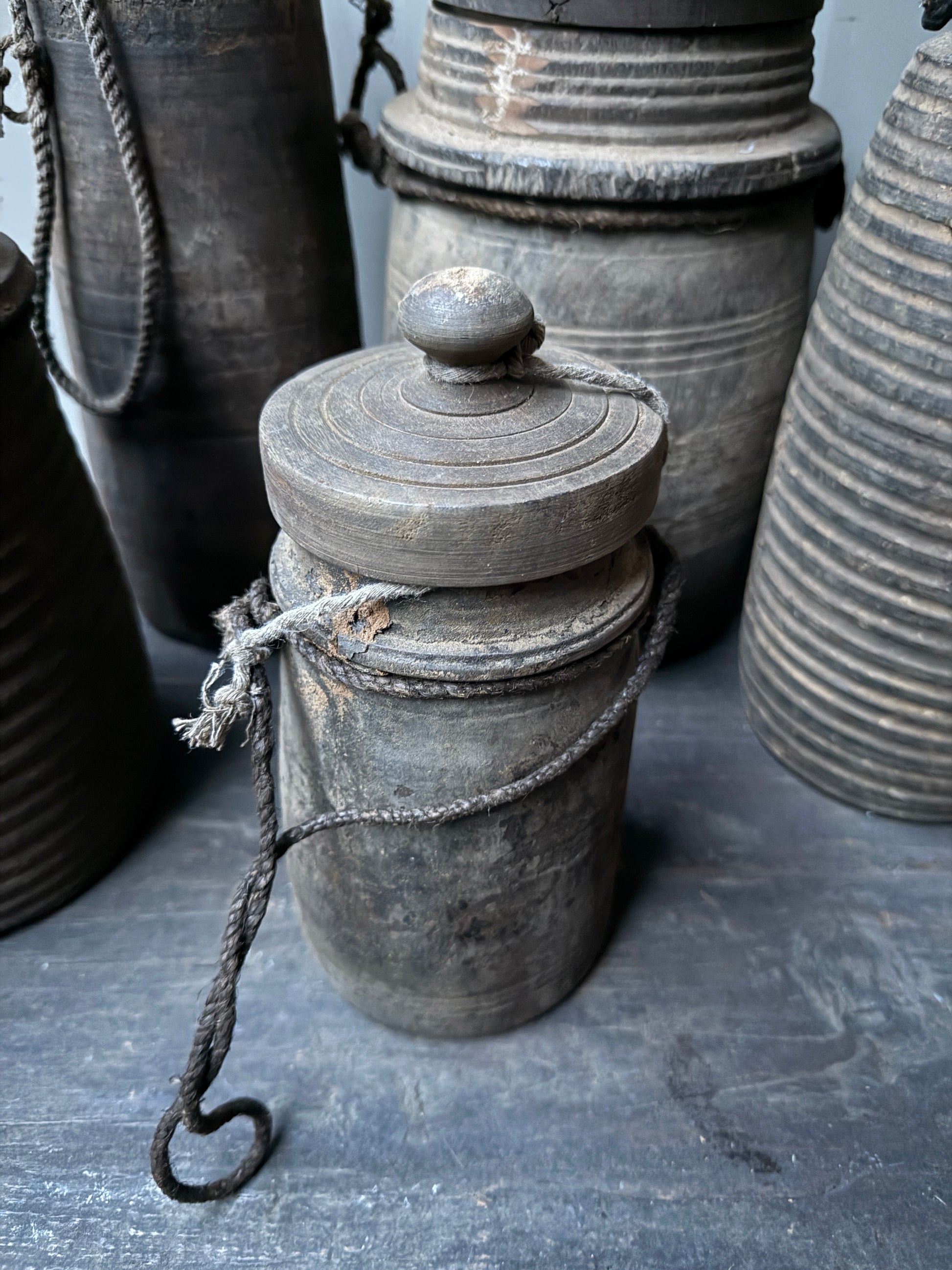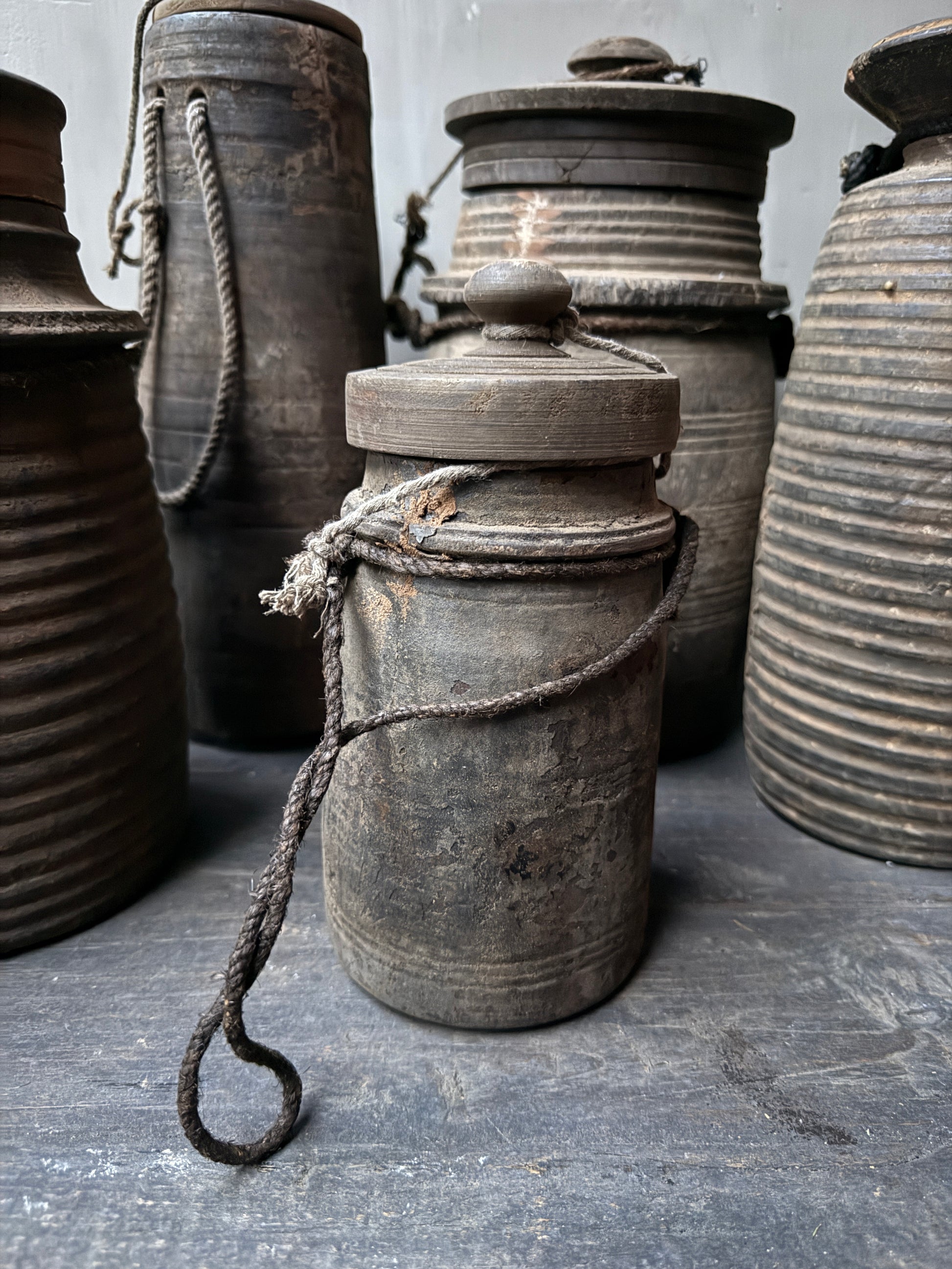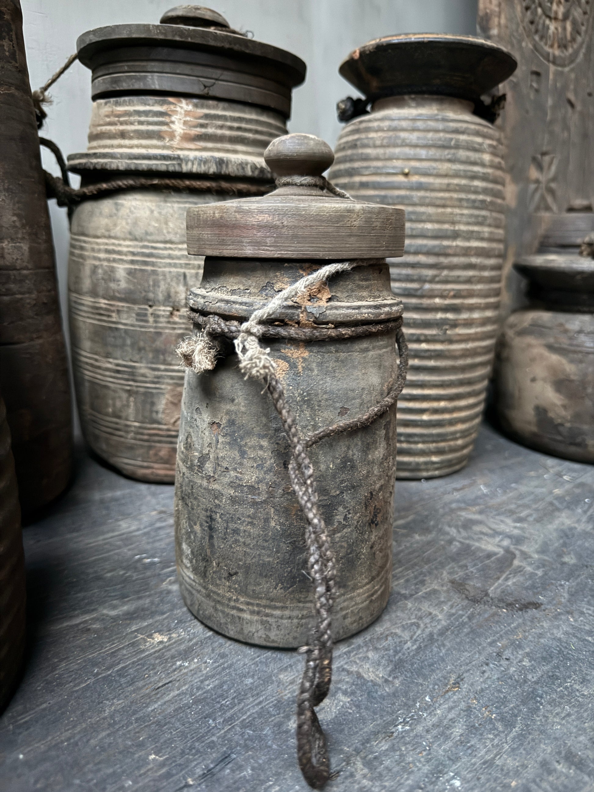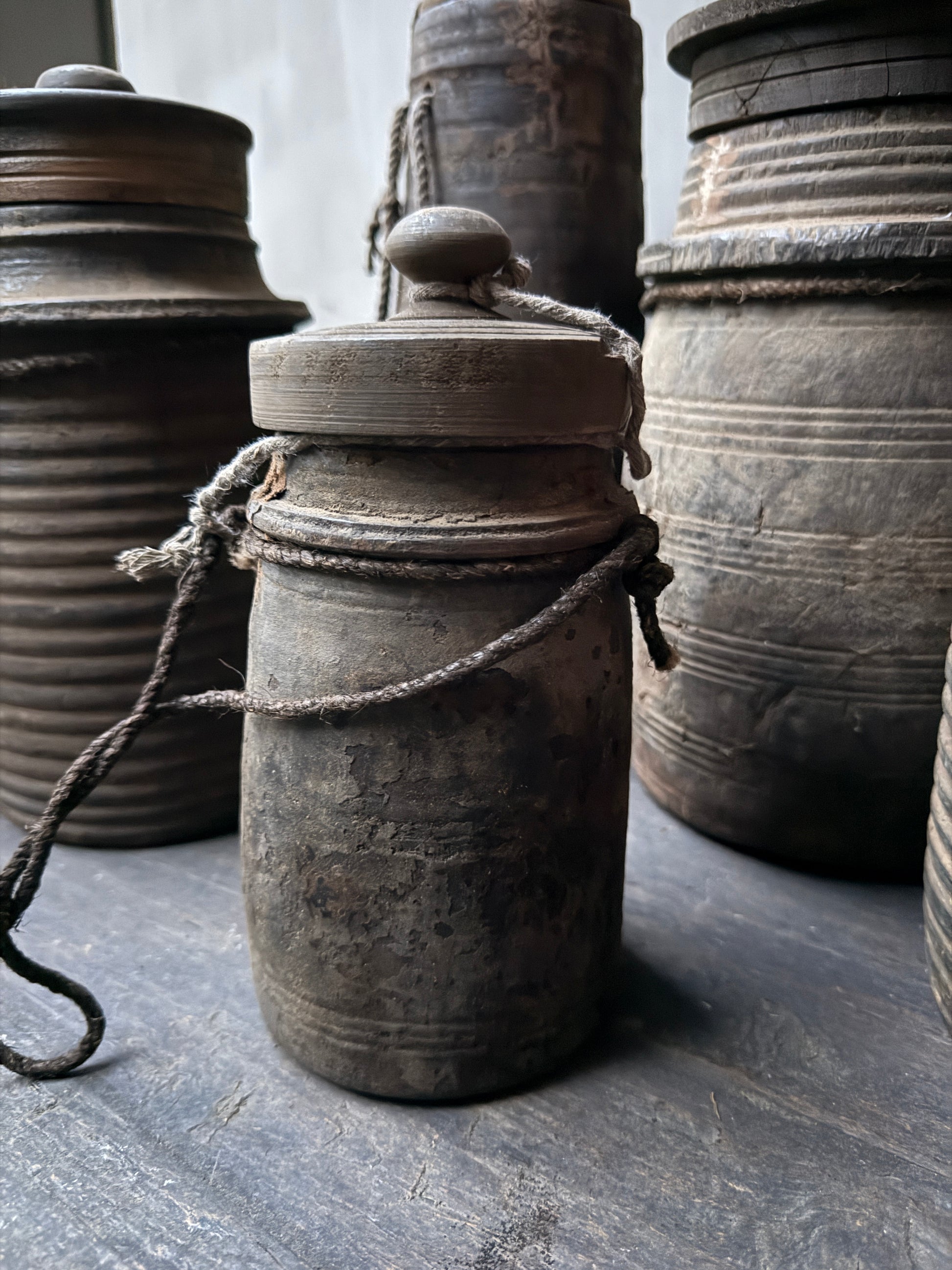 Houten kruikje met dekseltje. Begin je eigen verzameling met deze leuke verweerde houten kruikjes waarvan er geen een het zelfde is.