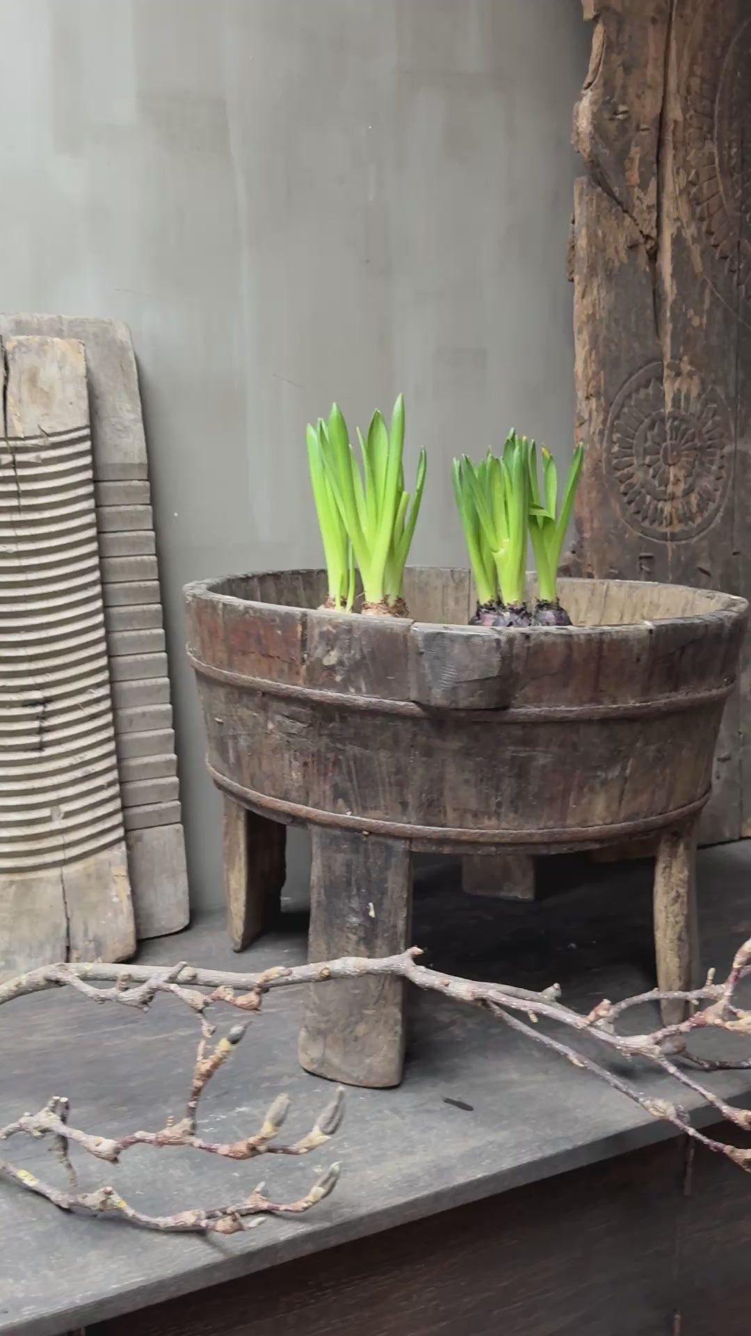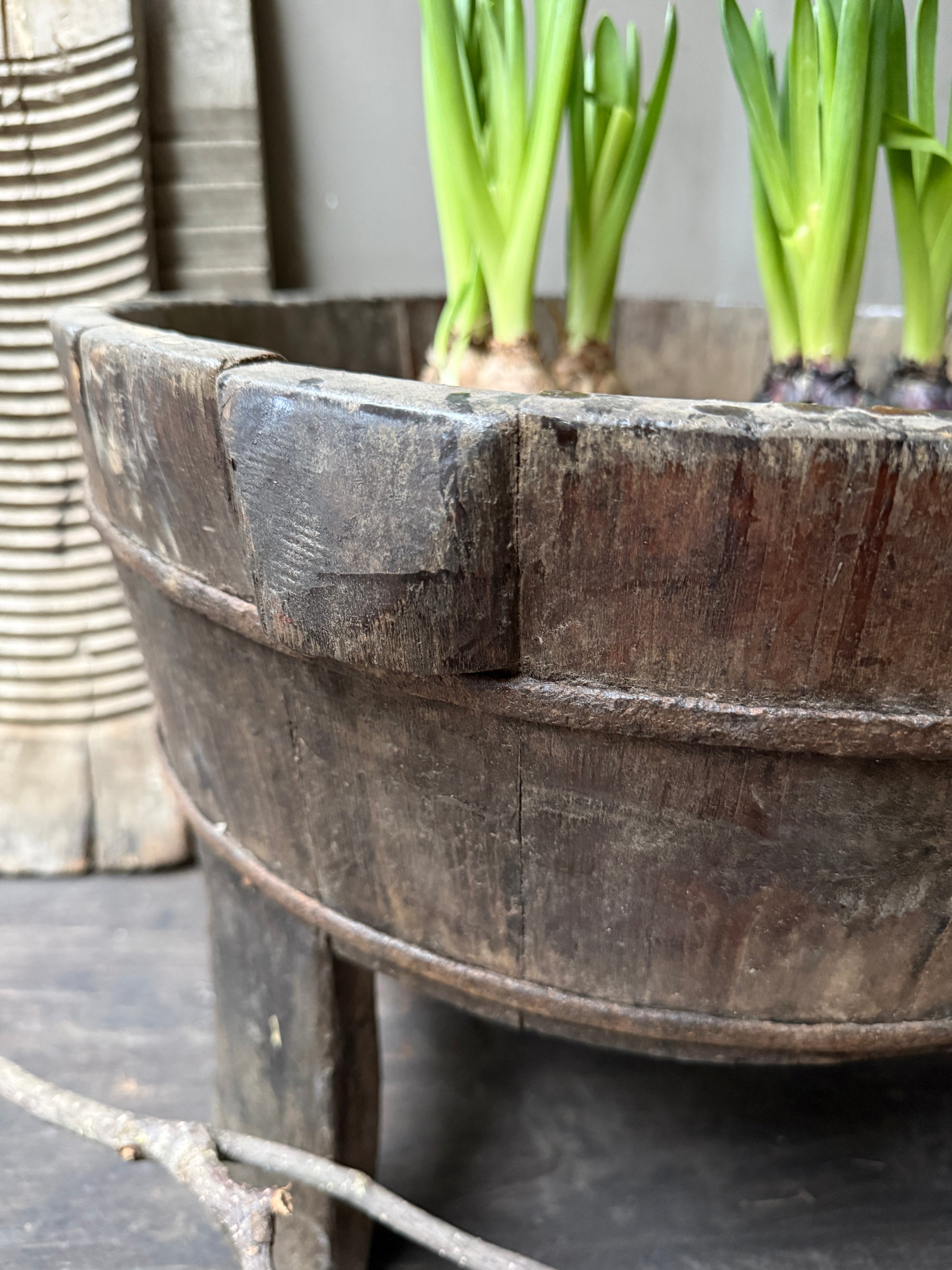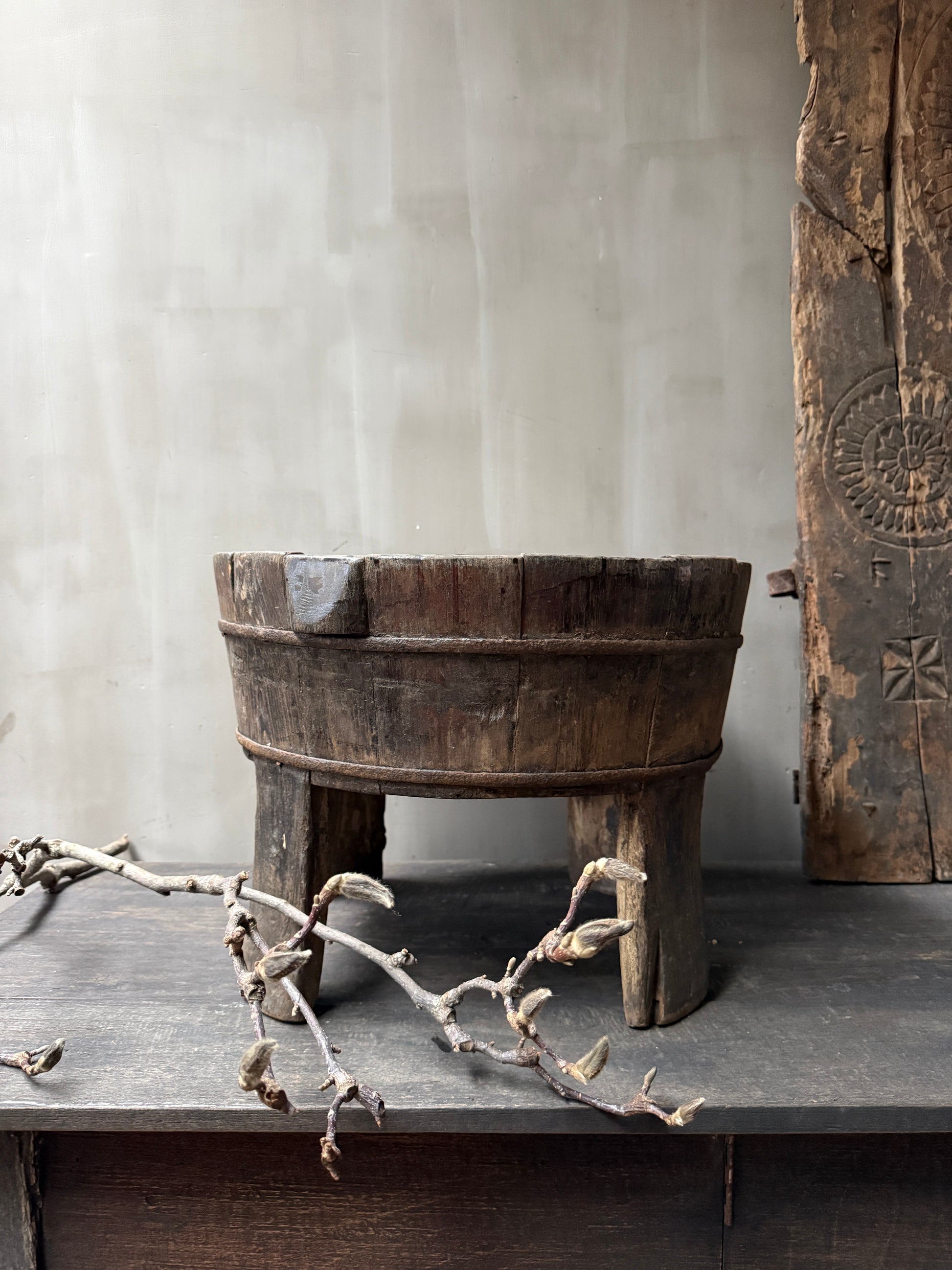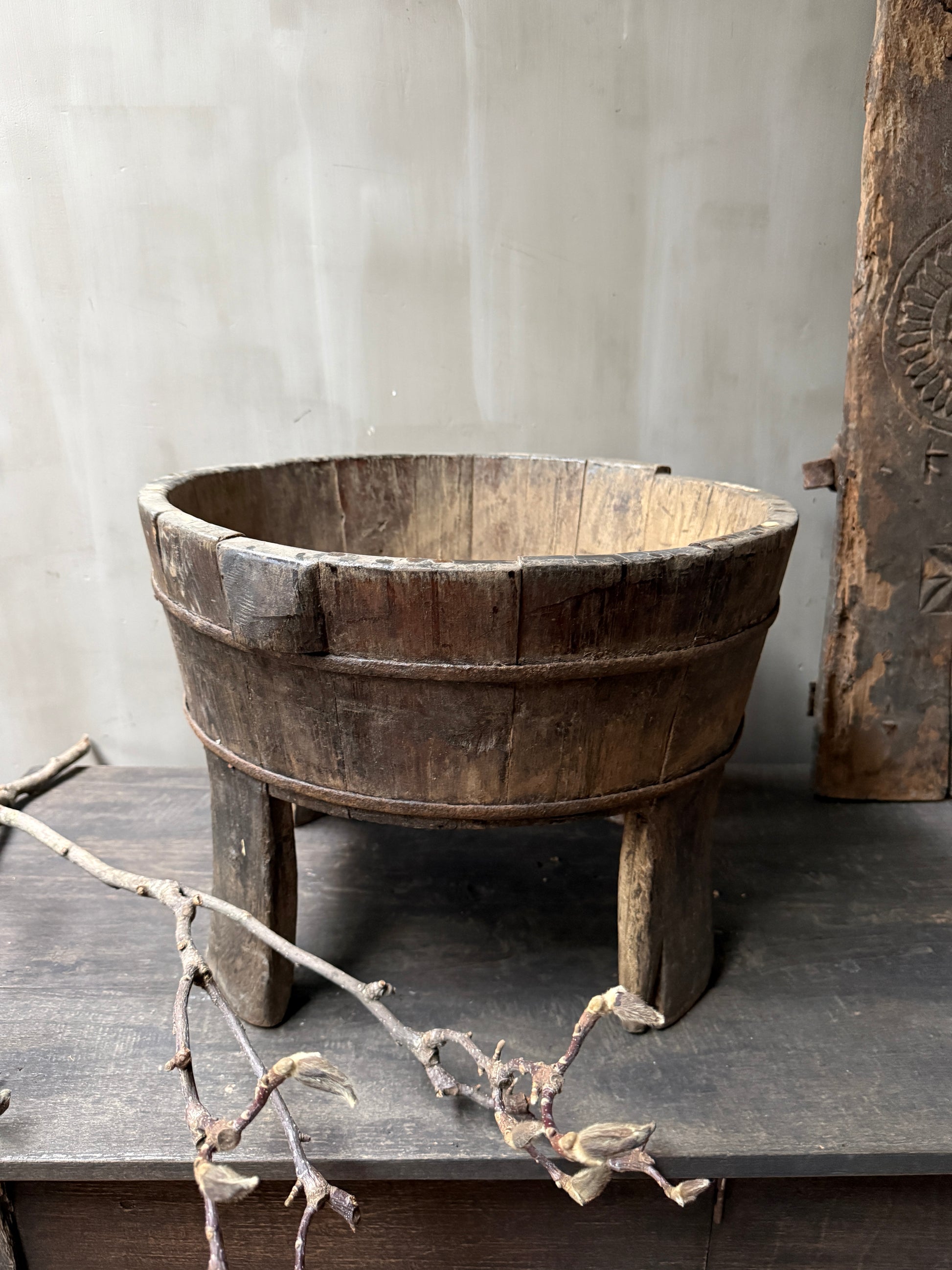Prachtige ronde olijfbak op poten van oud hout in een echt prachtige vergrijs de kleur. Deze bak is op ontzettend veel verschillende manieren te decoreren. Zet hem bijvoorbeeld leuk vol met Nepalese kruikjes, met windlichten, een leemmand of leuk met mosbollen. Of zet hem buiten op de tafel en zet hem vol met plantjes. Een echte aanwinst voor ieder interieur met zijn prachtige verweerde en geleefde uiterlijk.