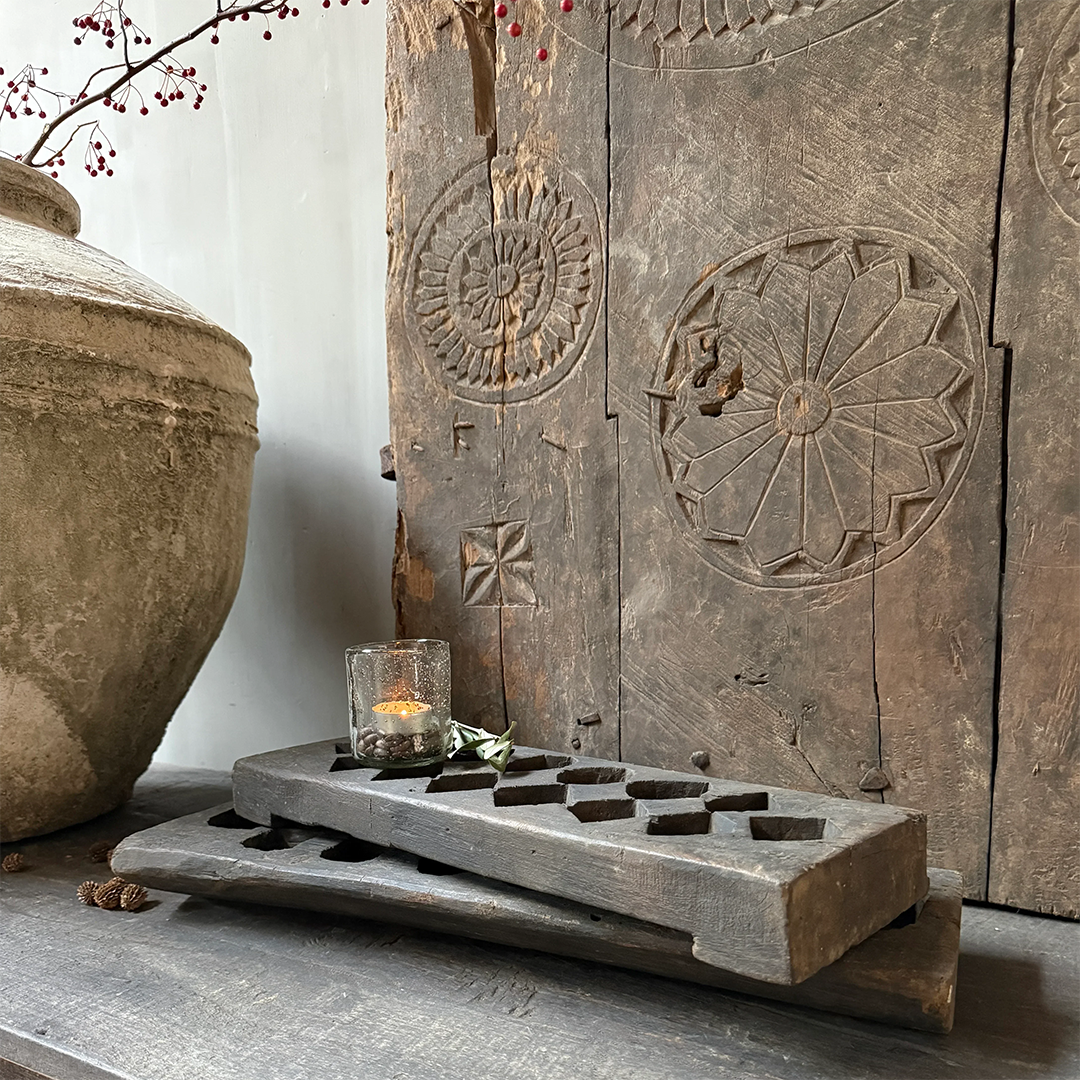 Ik heb me laten vertellen dat dit een oude houten koekjes mal is. Specifieker nog, hier werden kleefrijstballetjes, kokos- suikersnoepjes en offerbollen gevuld met bloemen en rijst in gemaakt. Deze mallen komen waarschijnlijk uit 1880- 1930. De houten mallen worden met de hand gemaakt. Ik vind deze houten mallen in ieder geval geweldig! Heel decoratief, te leuk bijvoorbeeld om in de keuken mee te decoreren maar waar zijn deze niet leuk.