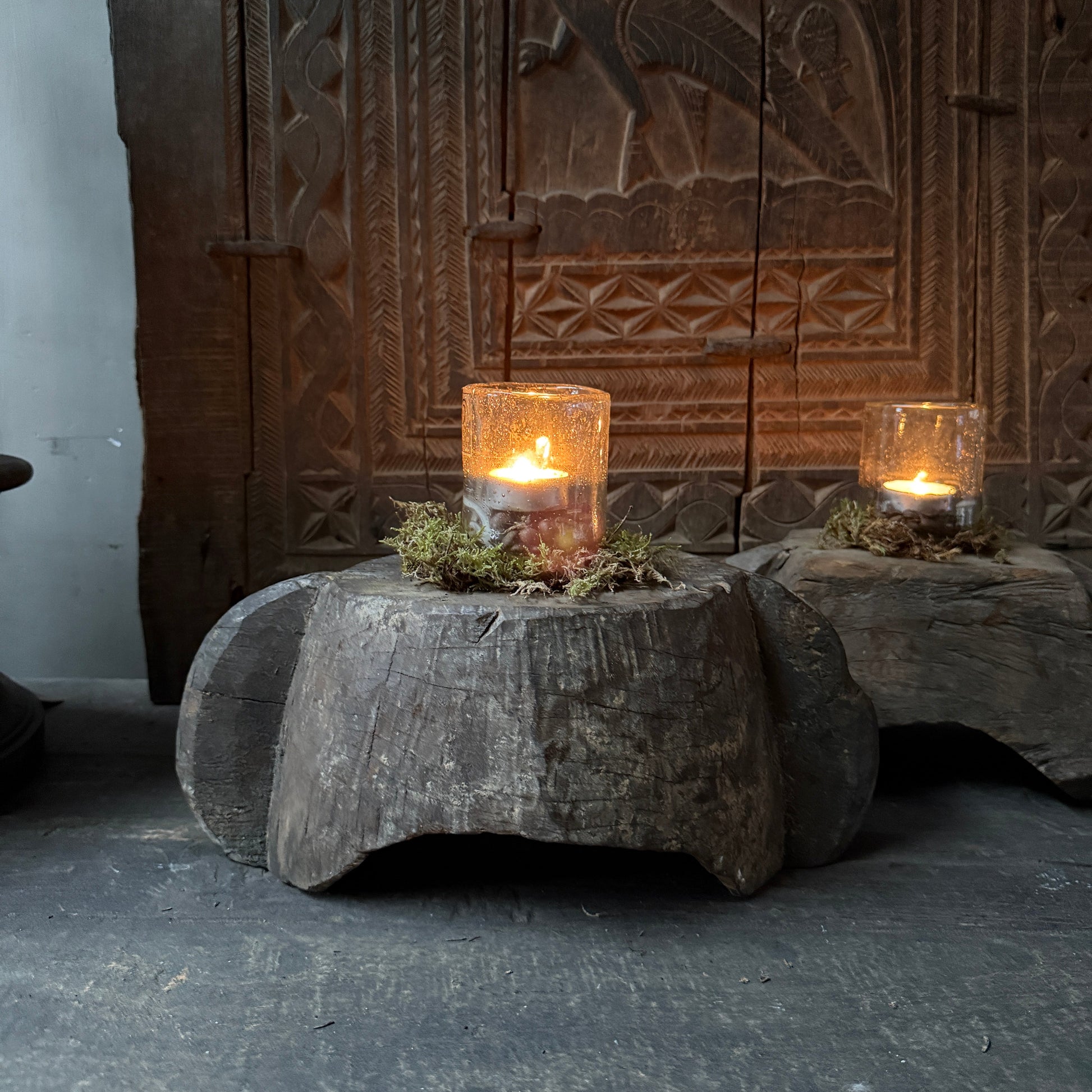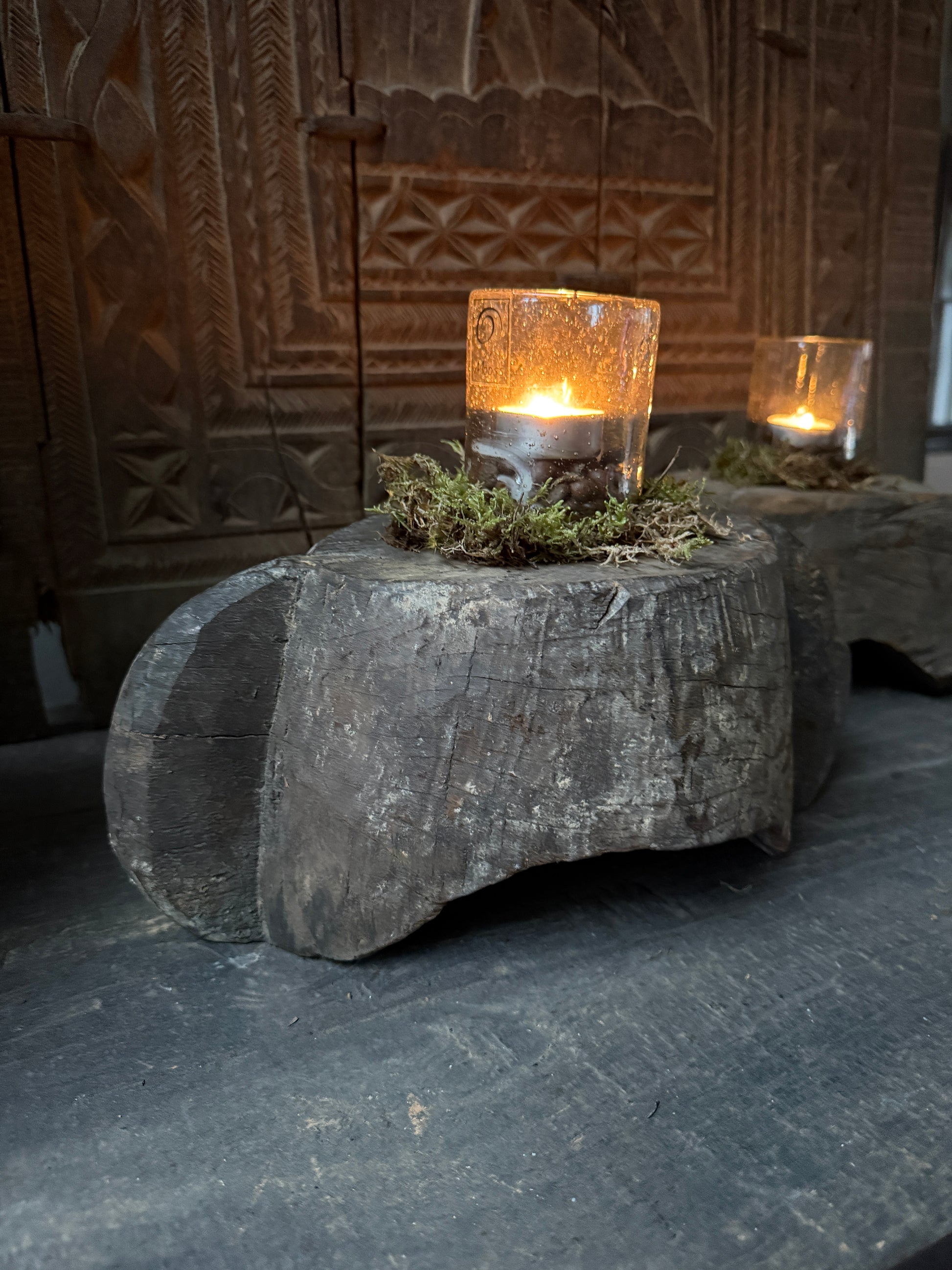 Heel leuk deze ornament poer kandelaar. Van mooi oud verweerd massief hout. Deze ornamenten zijn heel decoratief en vinden overal hun plekje.
