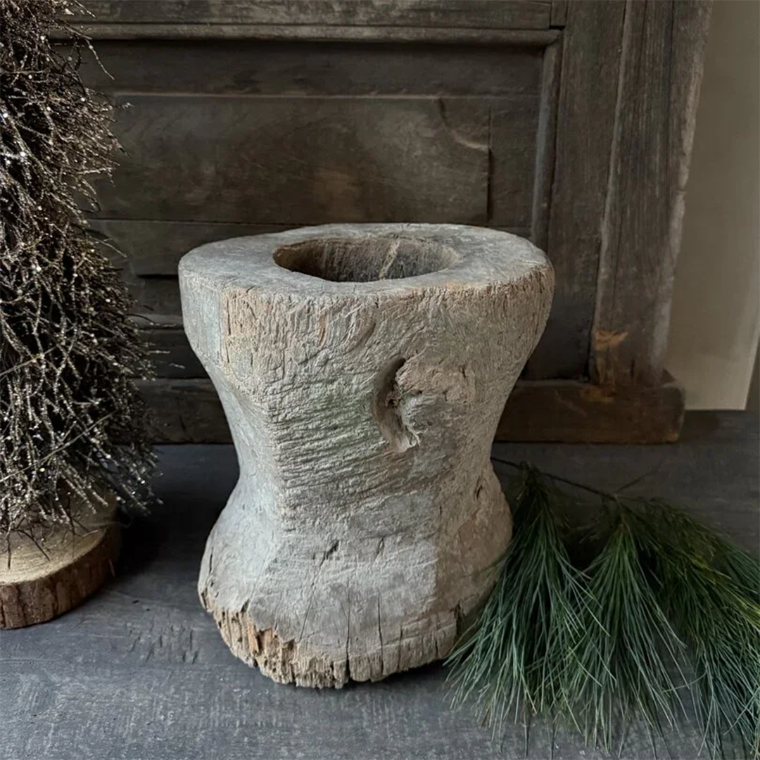 Prachtig deze oude houten vijzels en zo mooi van kleur met hun verweerde vergrijsde oude hout. Vijzels zijn van massief hout. Heel decoratief en leuk kleiner model voor op tafel bijvoorbeeld. Maar deze staan natuurlijk overal leuk. Zet er met de kerst een leuk nobilis boompje op of een mooi windlicht met groen cover, dat steekt zo mooi af tegen het oude hout.